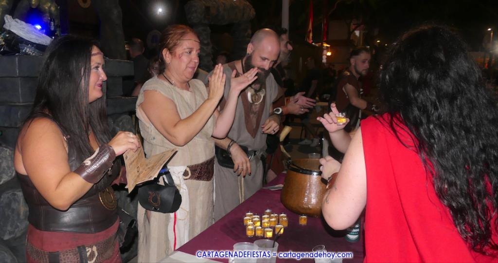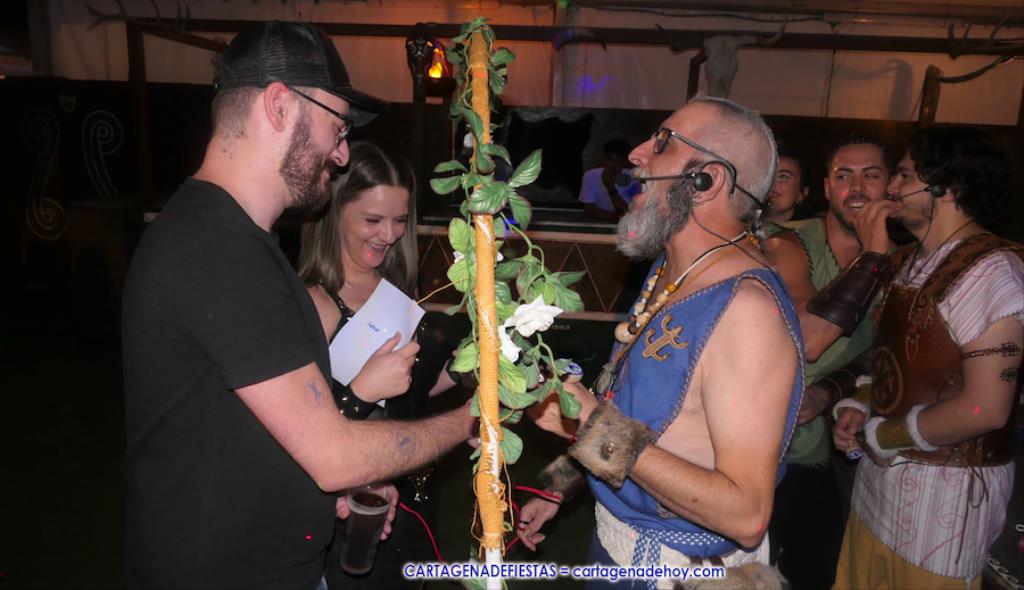 En la mayoría, además de entregar un certificado, el enlace se enriquece con degustaciones. Así, en unos se reparte tarta, en otros pan con sobrasada, por citar unos ejemplos. También, como es el caso de Mercenarios de Lobetania, los contrayentes deben bebe los chorros de brebaje que salen por los pechos de su diosa Astarté.