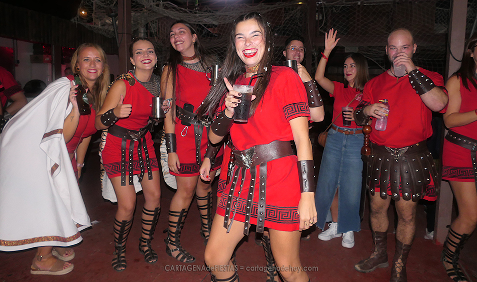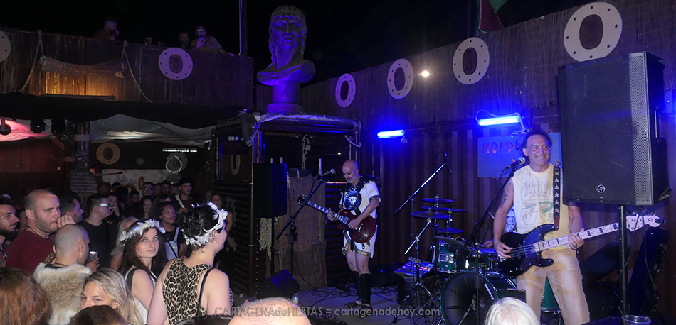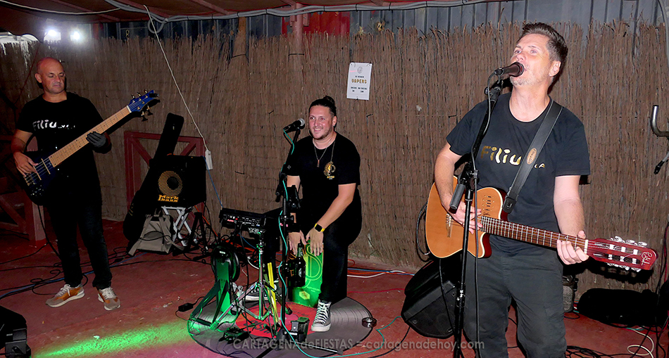 Diversas tropas y legiones de Carthagineses y Romanos ofrecen durante las fiestas actuaciones de bandas de música en directo en sus recintos del campamento, con entrada gratuita para festeros y visitantes. En la foto, el fuerte de Cayo Lelio con 'Filiú&Cía', a quien agradecemos el detalle que adaptase su estribillo para elogiar la labor de Cartagena de Hoy.