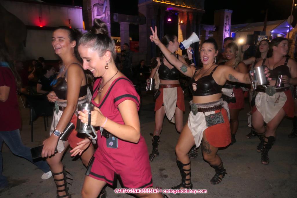 Las primeras noches de esta semana en el campamento de Carthagineses y Romanos ofrecen una sucesión de competiciones en los recintos de tropas y legiones con olimpiadas y concursos, desde el 'cazabolas' y el 'lanzamiento de hueso chochil' hasta la 'sokatira' y los karaokes.