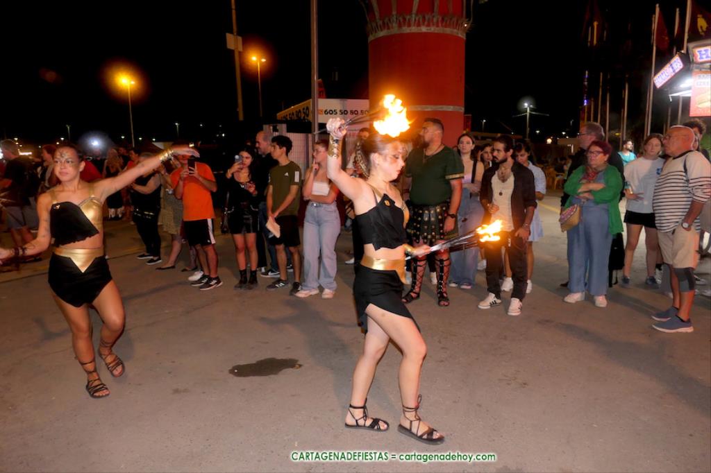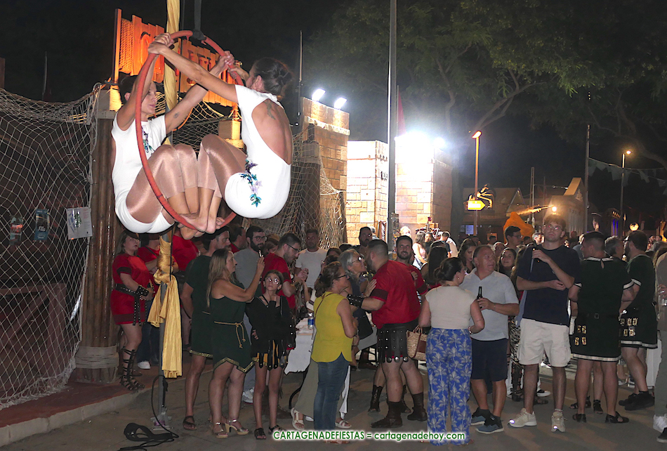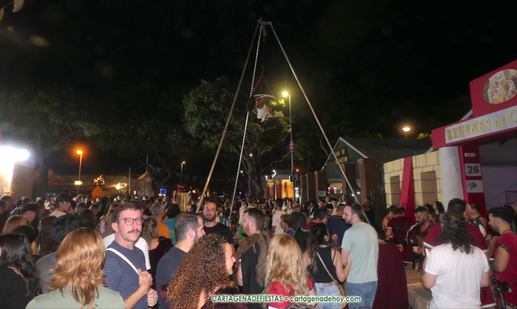 La calle se enriquecía con espectáculos de danza aérea y un escenario para actividades de las legiones.