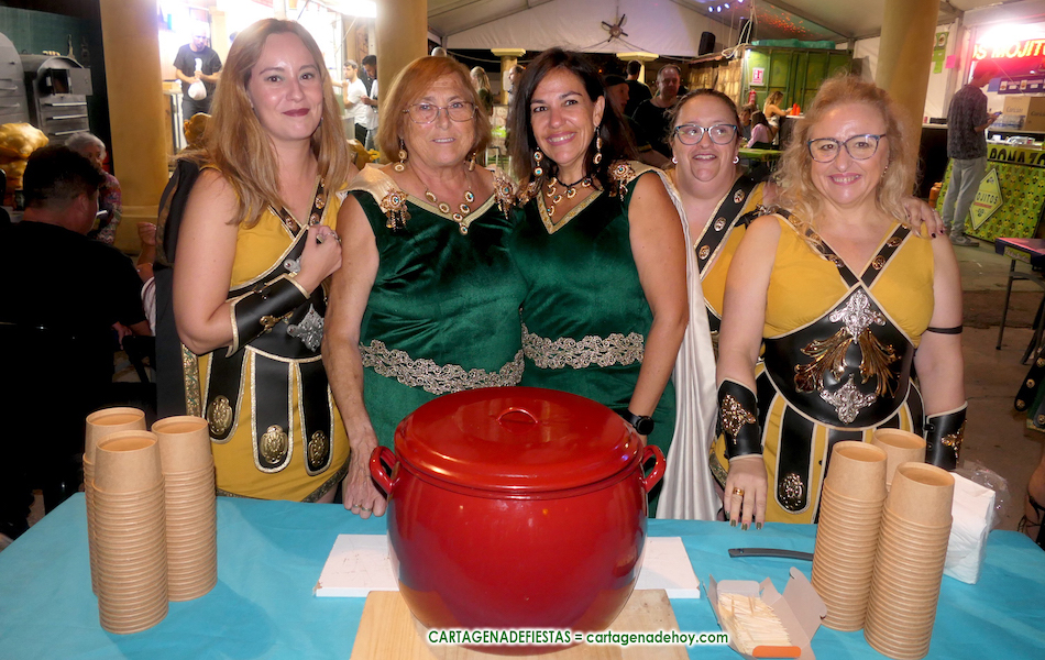 La dona iba tumbada, como es tradicional, siendo llevada por esclavos. Nada más entrar, Vigiles le ofrecía un tazón de sus pelotas con caldo. En ese momento se habilitada el primero de los 25 puestos, para los restantes hacerlo conforme avanzaba la romana.