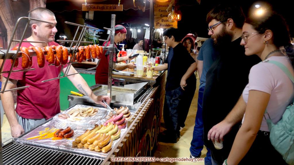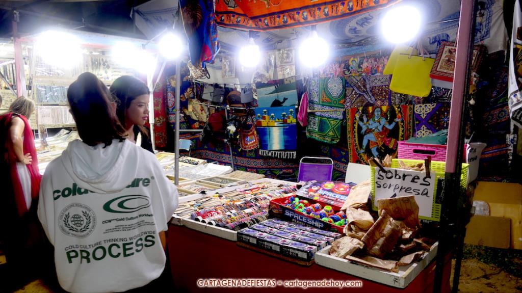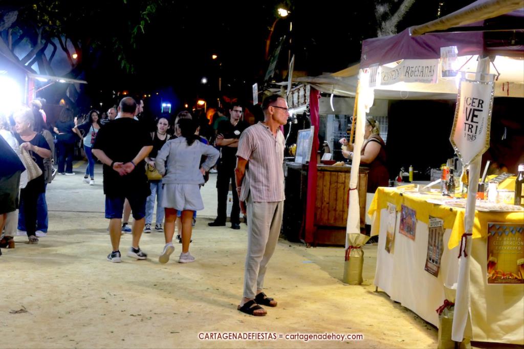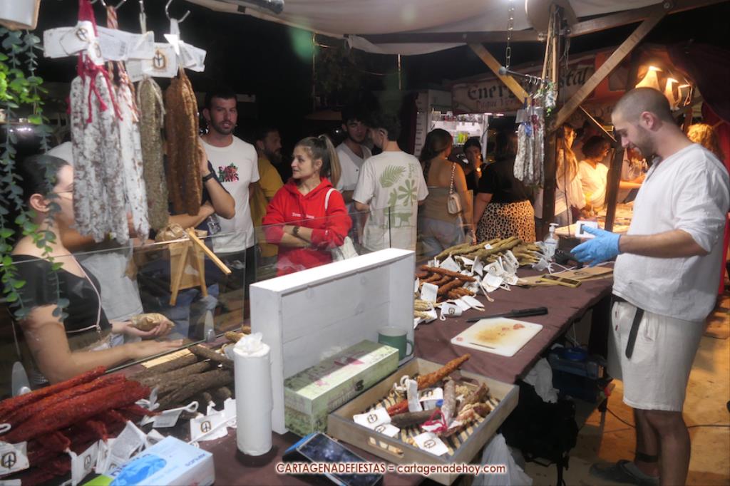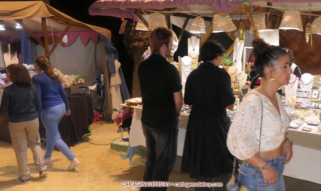 El mercado de la Fiestas de Carthagineses y Romanos del parque de Antonio Vallejo (junto al campamento festero) fue inaugurado ayer tarde con noventa y ocho puestos, figurando entre las novedades los de salchichas alemanas, pirograbados y velas de colza.
