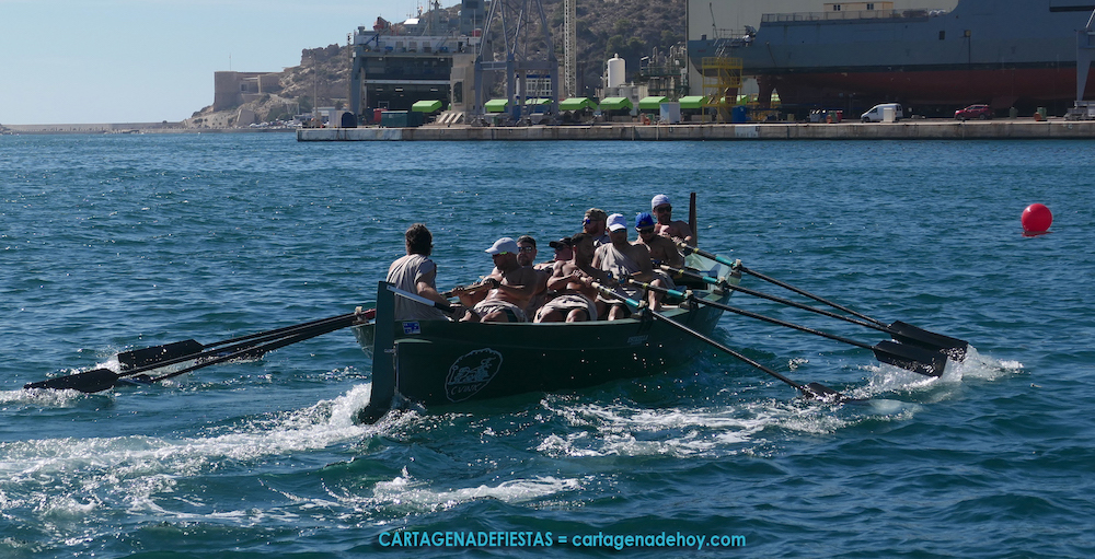 La siguiente prueba ha sido la masculina, donde los remeros romanos han comenzado mejor, pues, al parecer, los púnicos no escucharon el bocinazo que marca la salida. Sin embargo, fueron a más y el duelo se equilibró hasta que en el primer trayecto hacia la zona del puerto hubo una evidente confusión en la dirección de ambas embarcaciones, siendo la carthaginesa la primera en percibir el error, con lo que, al corregir (foto bajo estas líneas), tomó una ventaja que ya no soltó.
