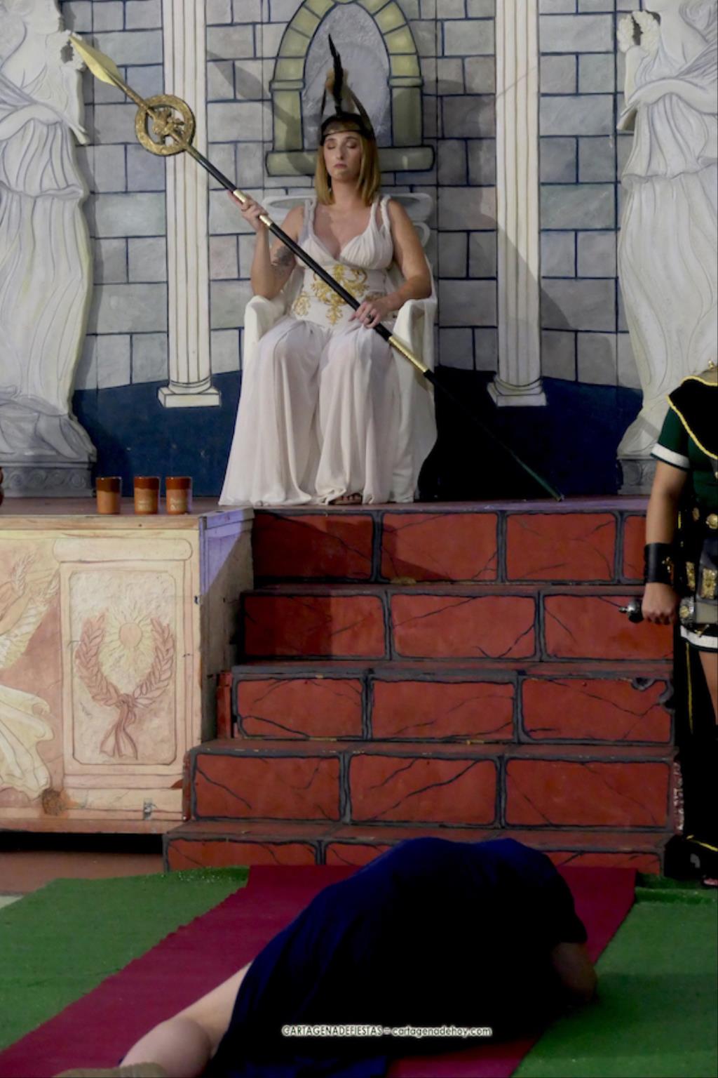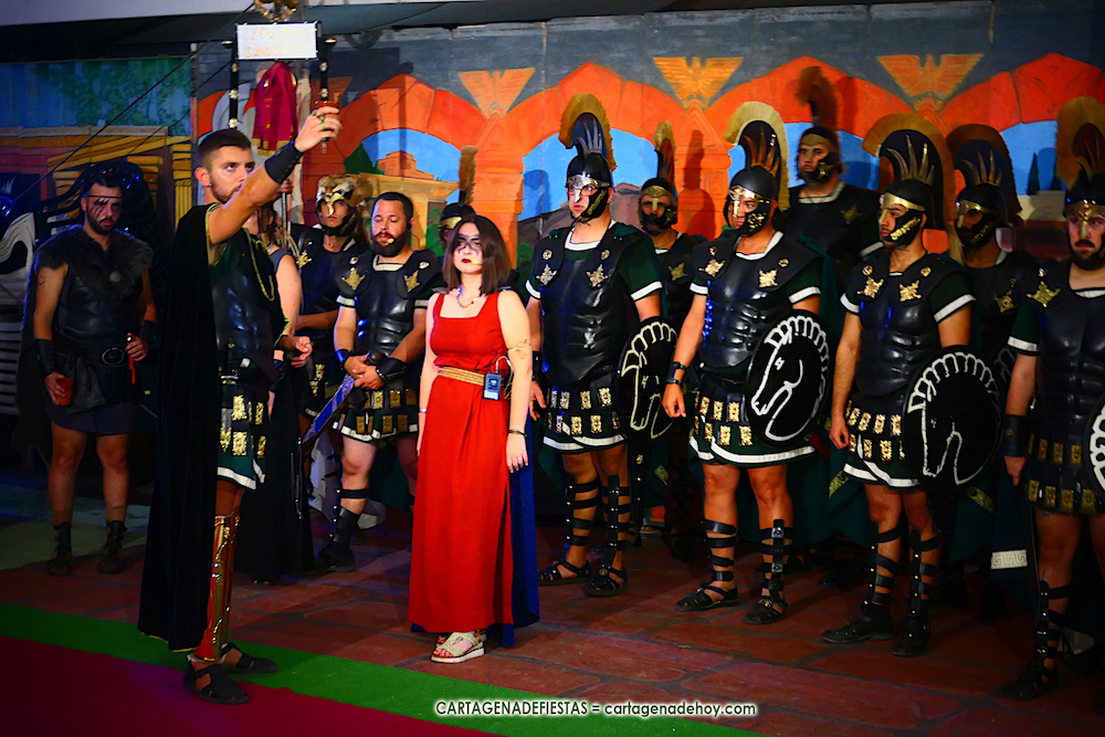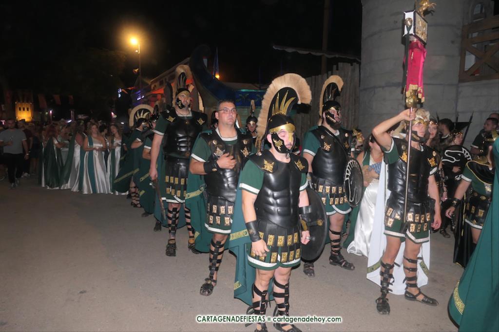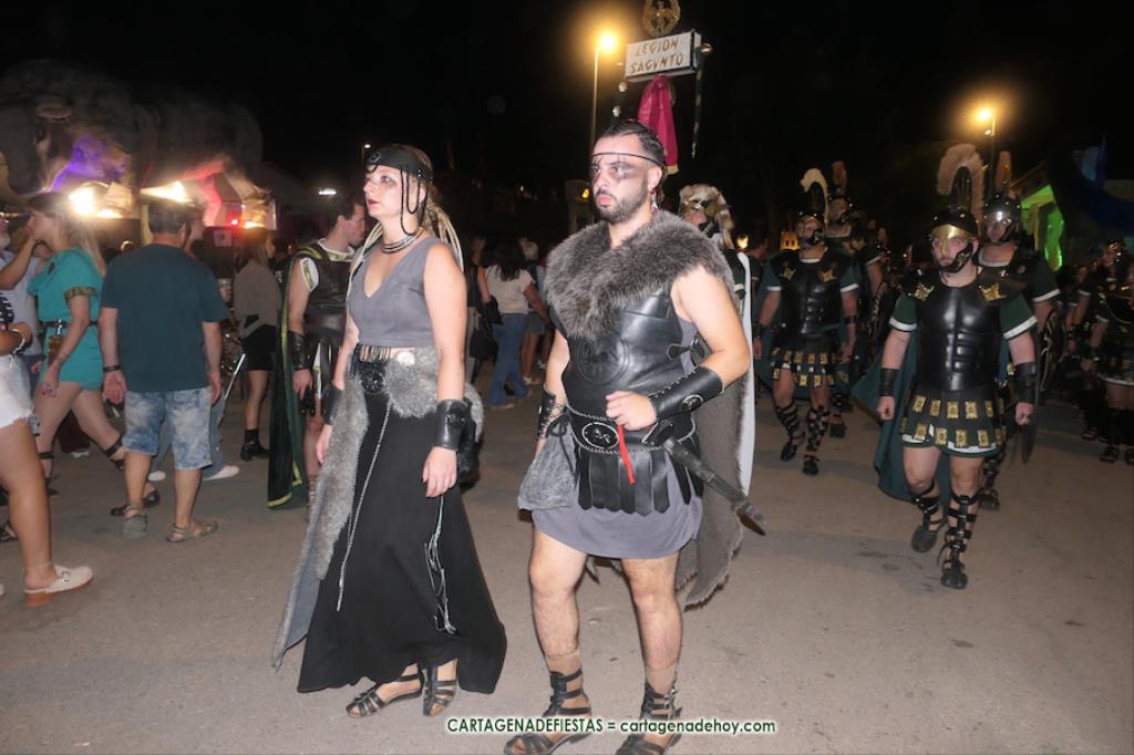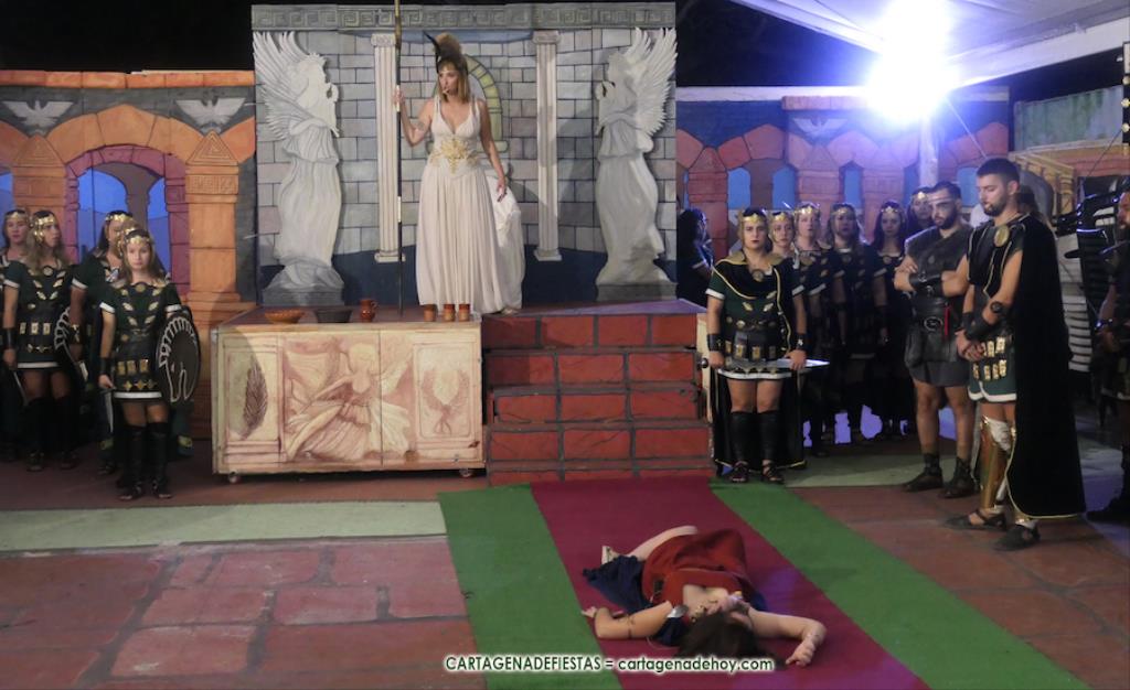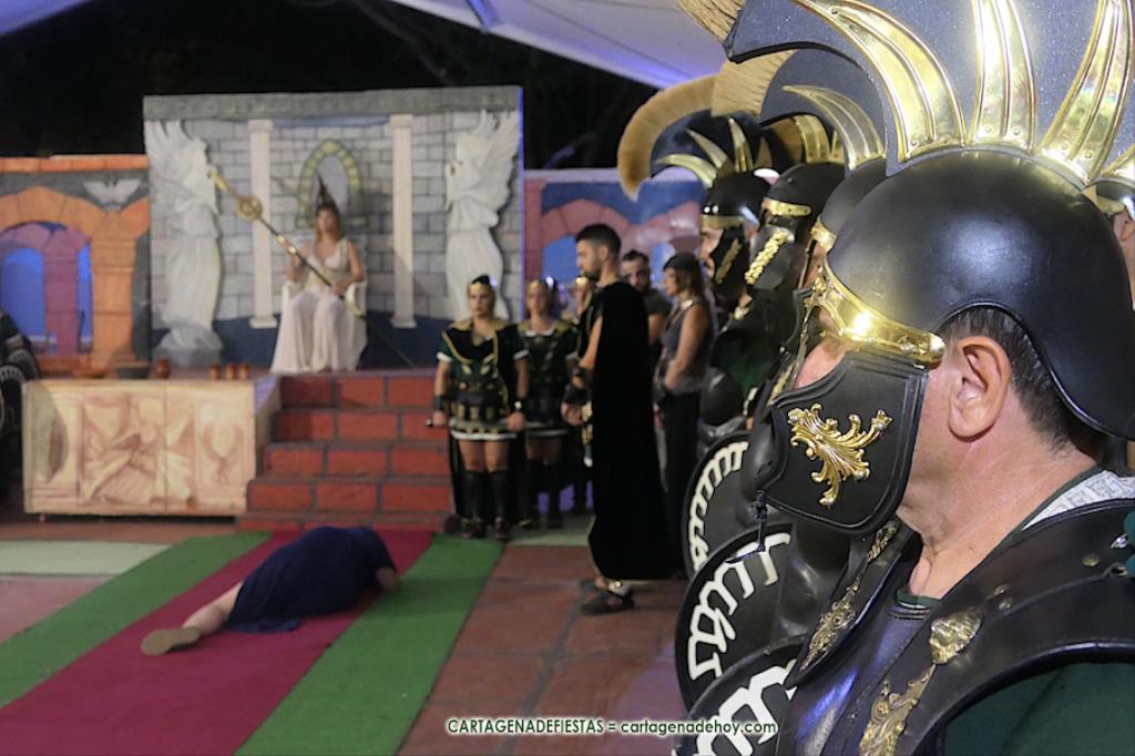 Sagunto fue destruido por las tropas de Aníbal. Sin embargo, quedó un pequeño reducto que hizo resurgir a este pueblo a la vez que crecía el ansía venganza ante el ‘cruel Aníbal’. El general Draco es el primer protagonista de una puesta en escena, con diálogos en directo y en penumbra, que tuvo lugar en el interior del campamento de la legión del caballo alado en el campamento festero, en el que participa la mayor parte de integrantes de la tropa, y en la que la sibila invoca a la diosa Niké, quien, a través de la sibila, vaticinará la venganza romana con la batalla de Qart-Hadast. Antes de la representación hubo un desfile de la legión por el interior de la gran aldea, a golpe de tambor, al que se sumaron representantes de otros grupos.