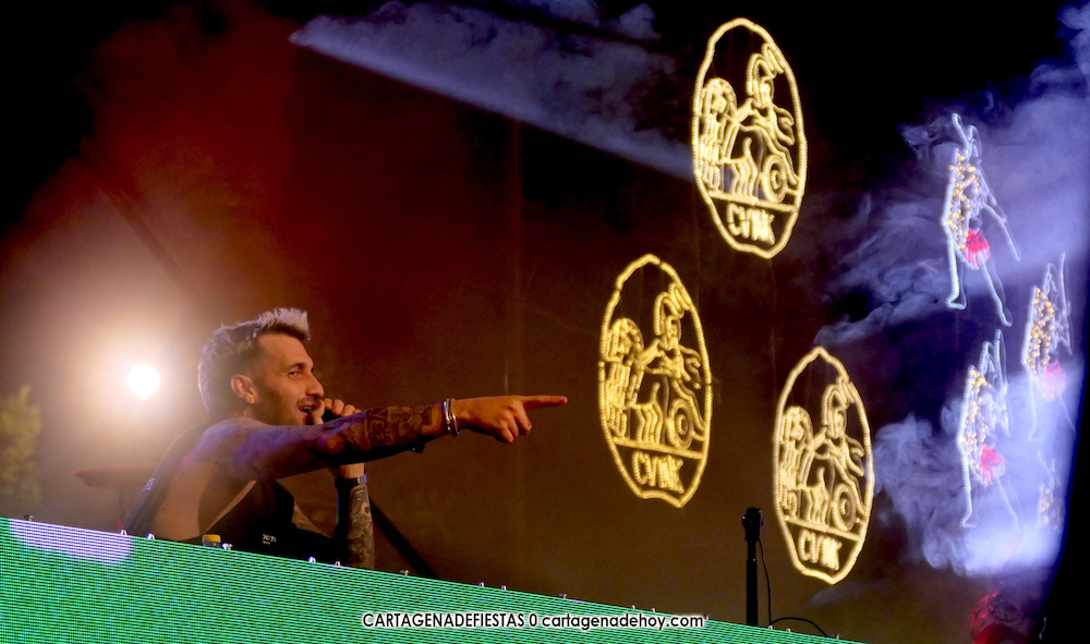 La música, otro de los protagonistas del desarrollo de Carthagineses y Romanos, ha tenido dos capítulos destacados en el escenario de la fachada del campamento, siendo el cartagenero Taao Kross, qien ofreció su espectáculo 'Una experiencia inmersiva en cartagena', el principal foco de atracción.