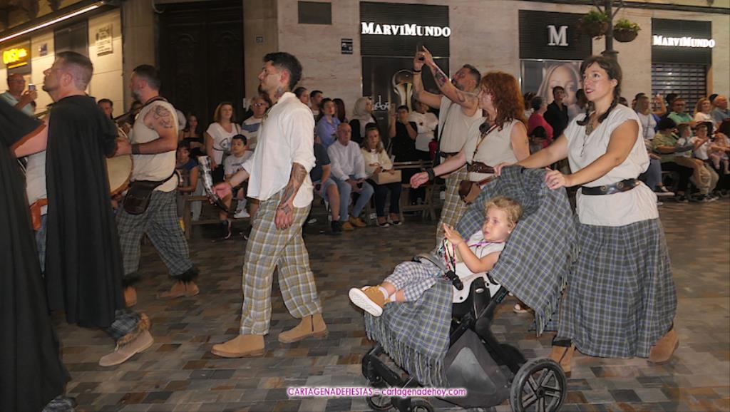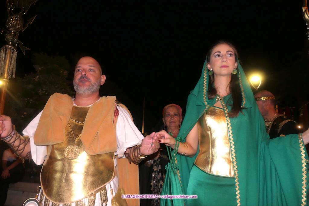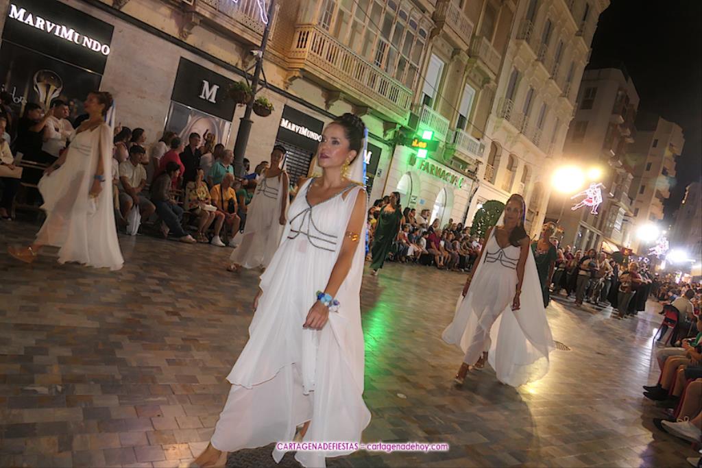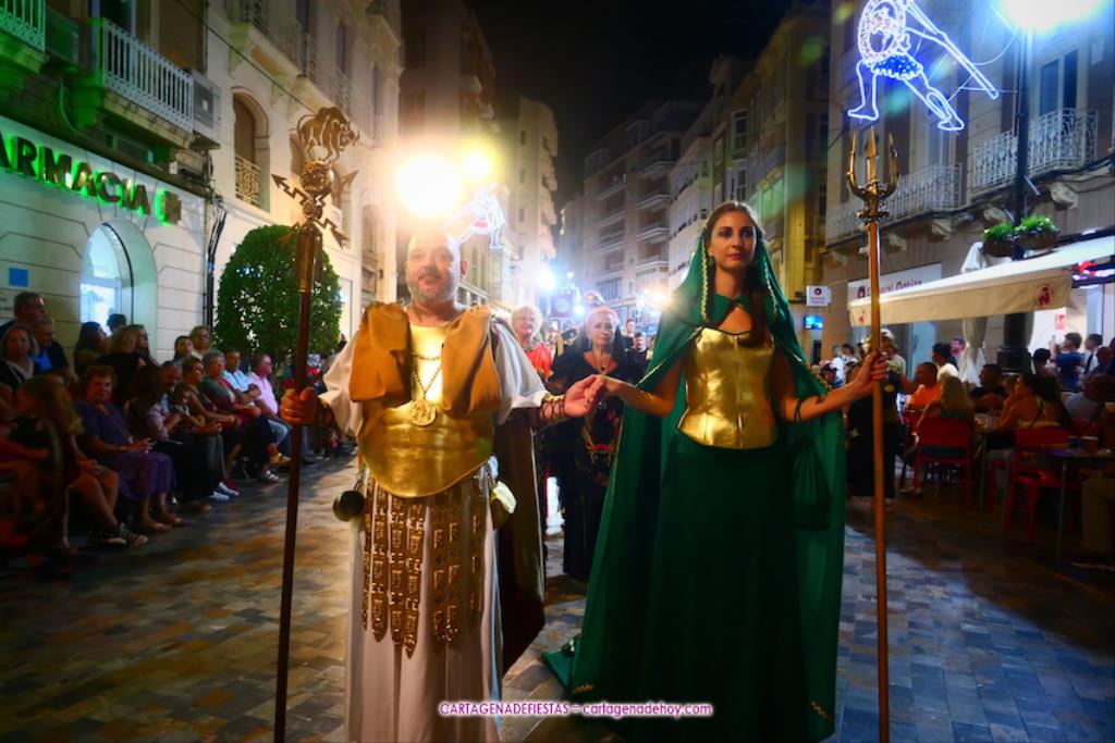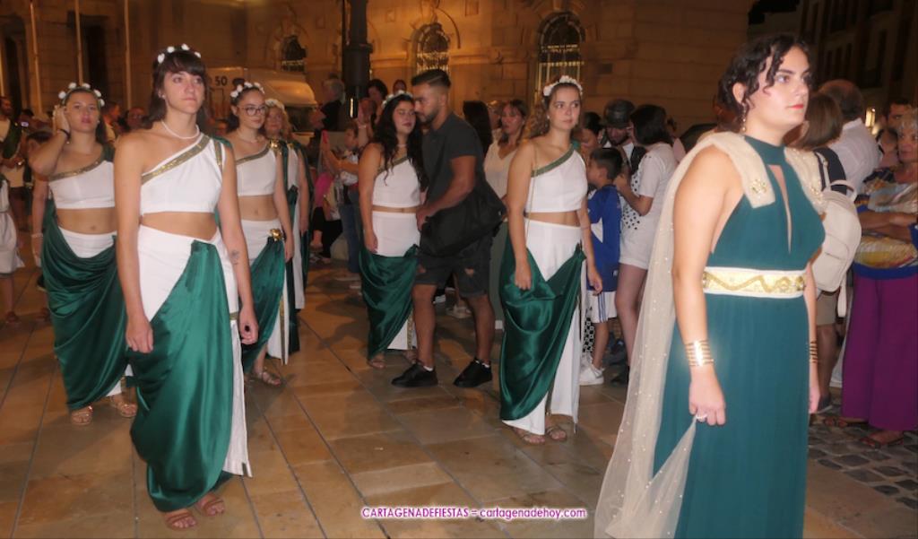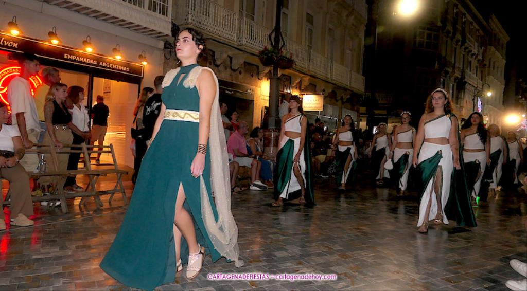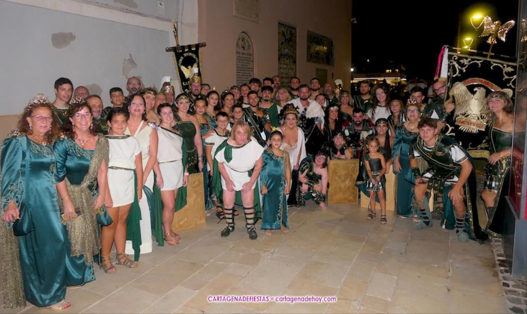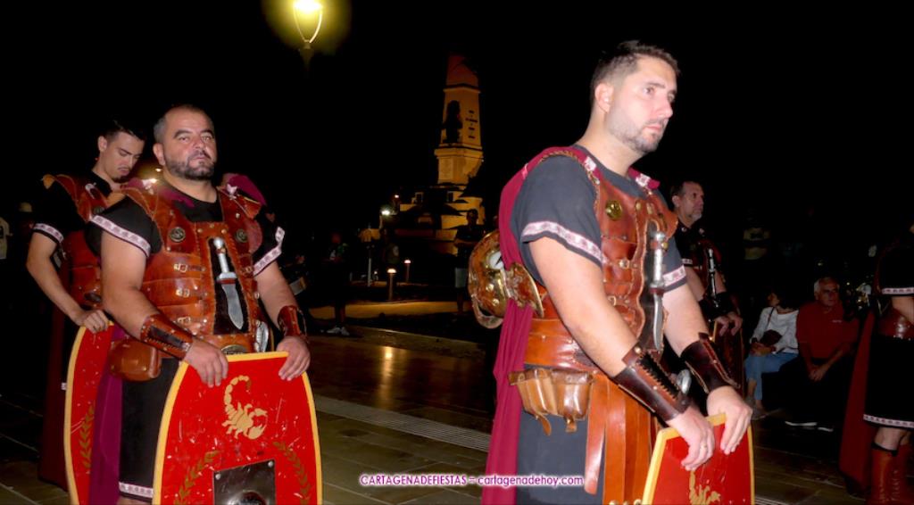 Unas dos mil personas protagonizaron el ‘Desfile de la victoria’ del Senado en las Fiestas de Carthagineses y Romanos, que comenzó en la plaza del Ayuntamiento y expiró en el campamento festero. Por cierto, si en otros artículos hemos reseñado importantes retrasos que han tenido algunos actos de estas fiestas, apuntar que tanto las representaciones de las coronas murales, liberación de rehenes y proclamación de la Ley de Roma fueron (casi) puntuales, saliendo de inmediato el gran desfile, lo que evitó espacios sin actividad para el espectador.