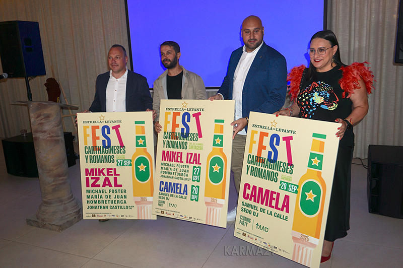 El festival festero de música se divide este año entre los dos sábados festeros, 20 y 27 de septiembre, siendo su principal atractivo la presencia de 'Camela, que actuará el primer día junto a Samuel de la Calle, Sedo DJ y Taoo Kross, mientras que la noche del 27 vendrán Mikel Izal, Michael Foster, María de Juan, Hombretuerca y el DJ Jonathan Castillo. Estos carteles fueron presentados ayer por la Federación de Tropas y Legiones en el acto celebrado en Espacio Cuarentaytres del puerto de Cartagena.