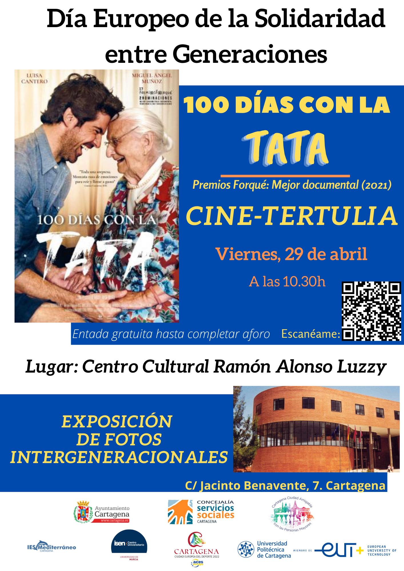 Con motivo del Día Europeo de la Solidaridad entre Generaciones, el próximo 29 de abril, tendrá lugar la proyección del documental "100 días con la tata", que recibió el premio Forqué al mejor documental en 2021, en el Centro Cultural Ramón Alonso Luzzy. Tras el visionado, habrá una tertulia en la que podrá participar toda persona interesada. Además, también podrá visitarse la exposición de fotos intergeneracionales que habrá en el mismo edificio. El evento tendrá lugar a las 10:30 horas con entrada gratuita hasta completar el aforo del espacio.