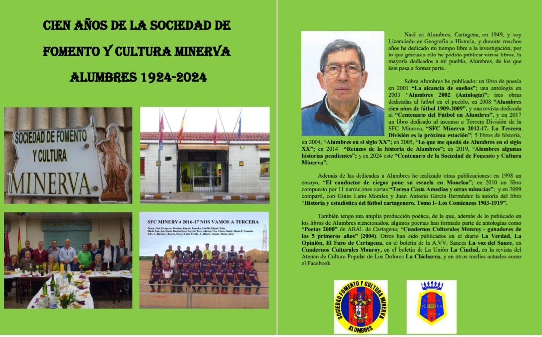 A lo largo del tiempo, he ido sacando a la luz la historia de Alumbres, que es uno de los pocos pueblos de los alrededores, que tiene lugares y organizaciones con cien o más años a sus espaldas, y éste celebramos el centenario de La Sociedad de Fomento y Cultura Minerva, pero en 2009, ya celebramos el del fútbol en Alumbres, cuyo evento pude disfrutar como espero hacerlo ahora, entre otras cosas, porque tengo la satisfacción de haber sido quien sacara a la luz su centenaria historia, en un librito memorable “Alumbres cien años de fútbol 1909-2009”.