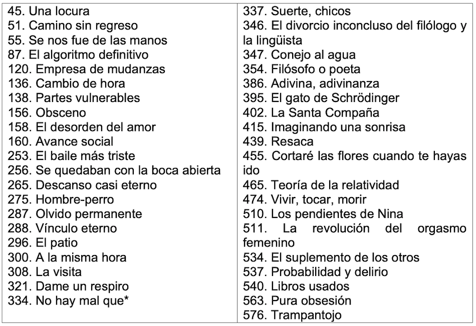 Los títulos de los microrrelatos finalistas son los siguientes:
