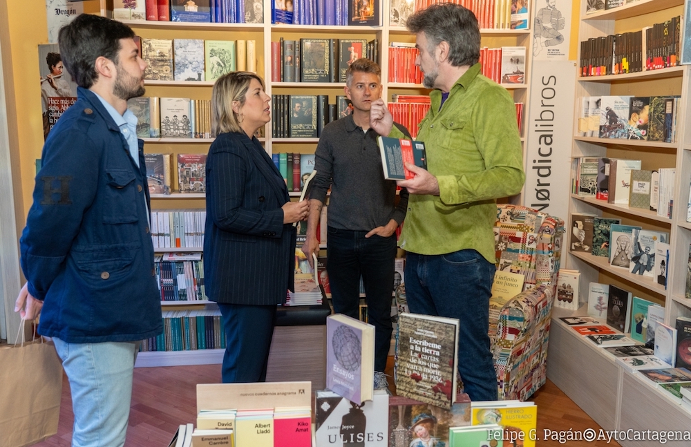 La conmemoración de este 23 de abril ha servido para mostrar el respaldo del ayuntamiento a la industria literaria. La alcaldesa, Noelia Arroyo, y el concejal delegado de Cultura, Nacho Jáudenes, han visitado la librería 'La montaña mágica', en la calle Pintor Porterla, para conocer de primera mano las inquietudes de los lectores y necesidades de los libreros. Allí los ha recibido Vicente Velasco, su propietario.