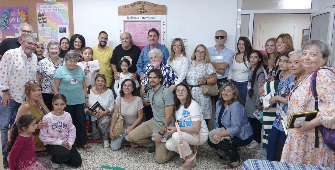El poeta y director del Instituto Cervantes visitó una vez más la biblioteca de este colectivo ubicado en José María Lapuerta y fue protagonista de un emotivo acto que contó con la asistencia de la vicealcaldesa, Ana Belén Castejón, y el concejal de Cultura, David Martínez Noguera.