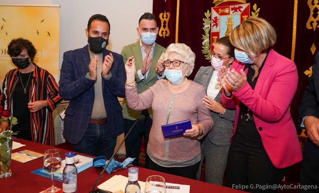 La poeta cartagenera ha recibido la felicitación de la alcaldesa de Cartagena, Noelia Arroyo, de la vicealcaldesa, Ana Belén Castejón, y del concejal de Cultura, David Martínez, el día de su 90 cumpleaños. Este acto se produce de forma previa al homenaje que se le brindará este jueves 11 de noviembre en el Palacio Consistorial dentro del festival de poesía 'Deslinde', organizado por el Ayuntamiento a través de la Universidad Popular.
