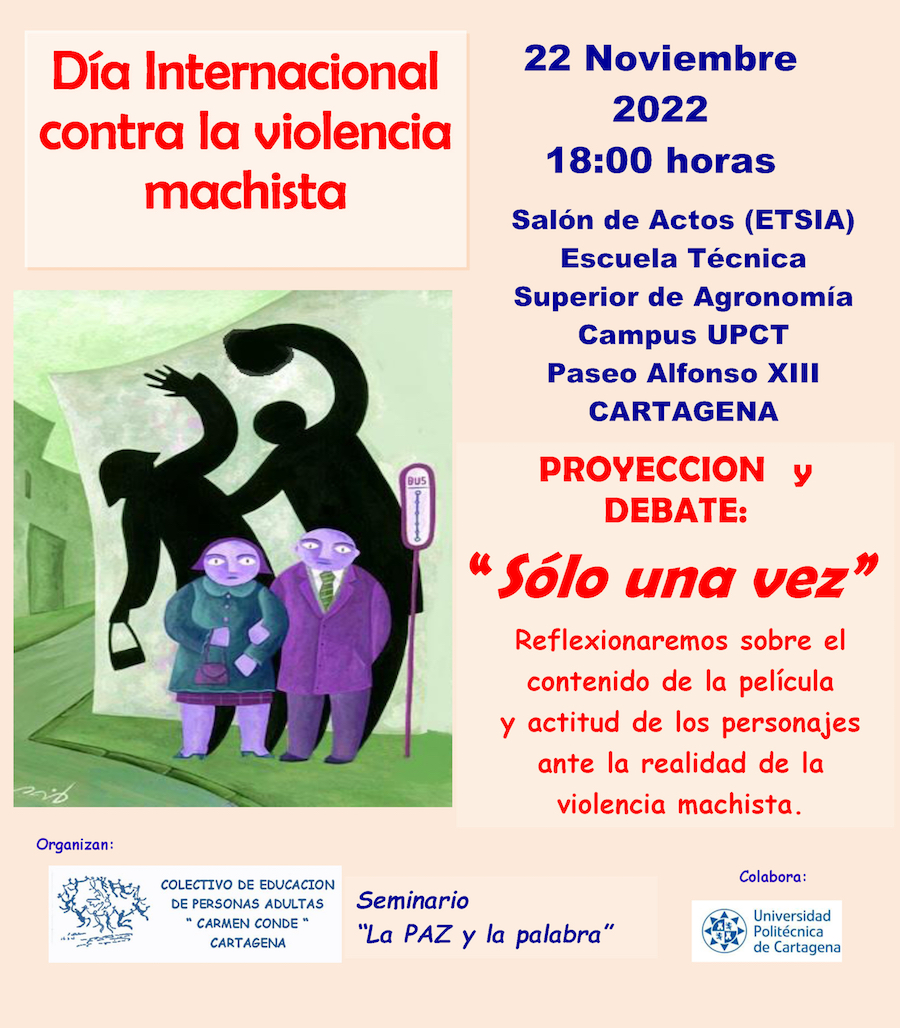 Es el título de la película que se proyectará este martes (18 horas) en el salón de actos de la Escuela de Agrónomos de la UPCT en el paseo de Alfonso XIII de Cartagena, tras la que se llevará a cabo un debate organizado por el colectivo de educación de personas adultas ‘Carmen Conde’ en el ‘Día internacional contra la violencia machista’.