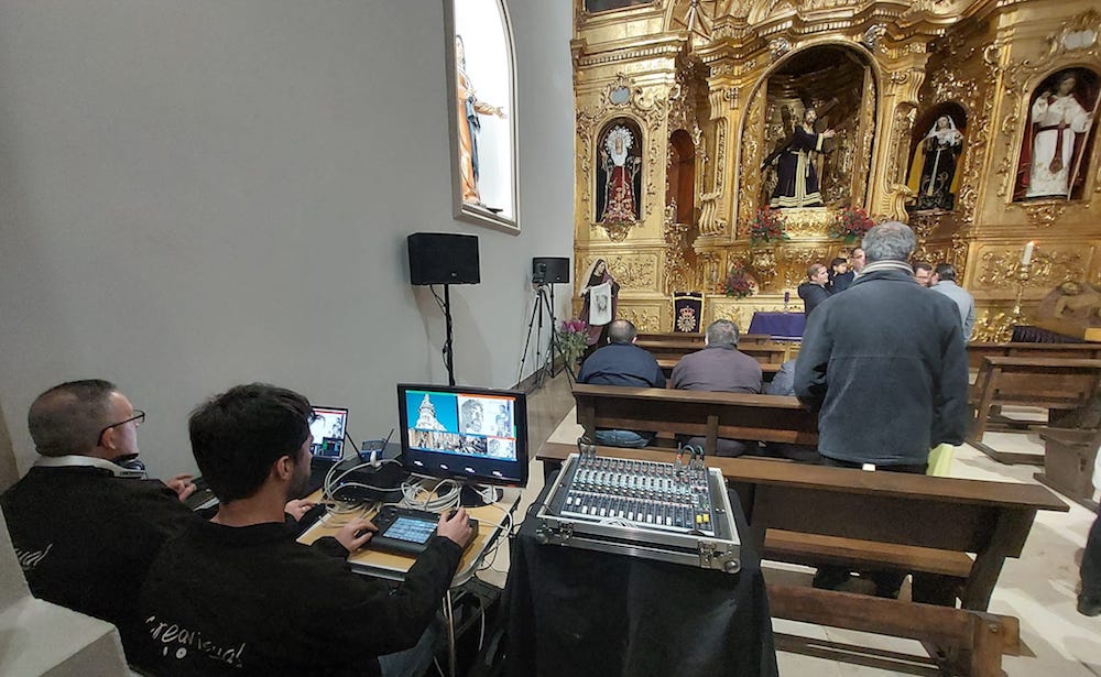 La empresa cartagenera vinculada a Montes Foto-Electro será la encargada de llevar a cabo la realización de la popular madrugada del 7 de abril, que será ofrecida en directo por la televisión autonómica entre la salida del Nazareno desde la Pescadería (2.30 horas) hasta la recogida en la iglesia de Santa María, poco antes de las ocho, incluyendo el esperado momento en que Jesús se encuentra con 'La Pequeñica' (4.30 horas). La foto muestra la transmisión que llevó a cabo Creavisual por internet del 'Pregón de la juventud marraja'.