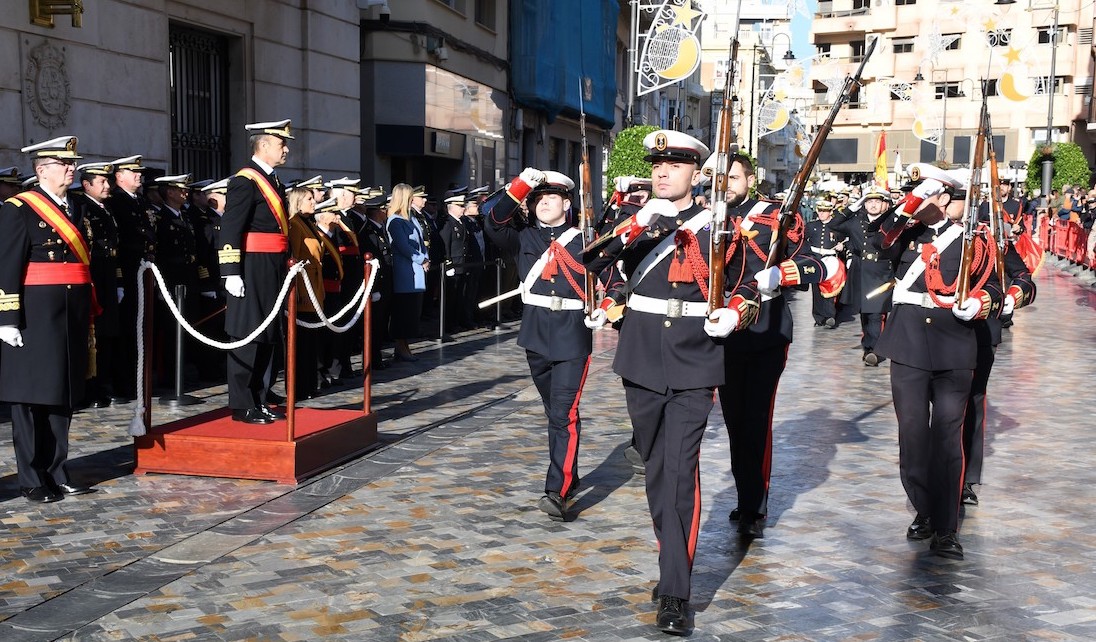 El Almirante de Acción Marítima (ALMART), vicealmirante Alfonso Delgado Moreno ha presidido esta mañana, en representación de Su Majestad el Rey, el acto celebrado en Cartagena con motivo de la Festividad de la Pascua Militar (se celebra desde 1782), que ha incluido un desfile de varias fuerzas castrenses ante el edificio de Capitanía y una recepción en el salón del trono.
