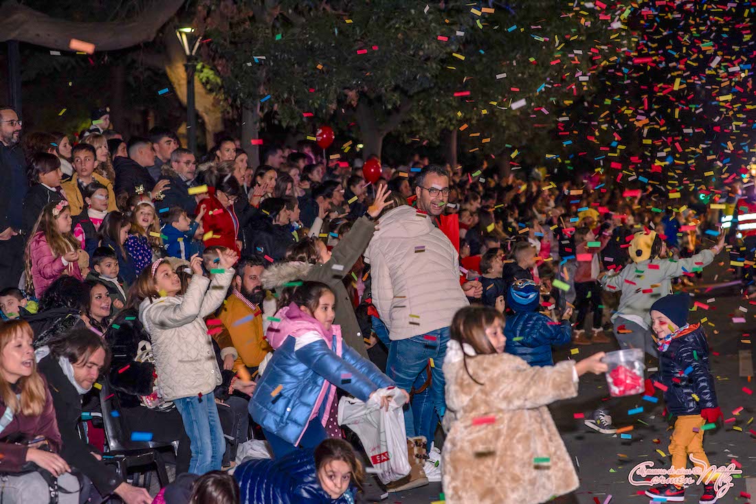 Melchor, Gaspar y Baltasar fueron acompañados por los reyes de las fiestas patronales en un desfile que multiplicó la participación de integrantes con respecto a las ediciones anteriores a la llegada de la pandemia gracias a la mayor implicación de comparsas y vecinos, que dieron más atractivos al pasacalles.