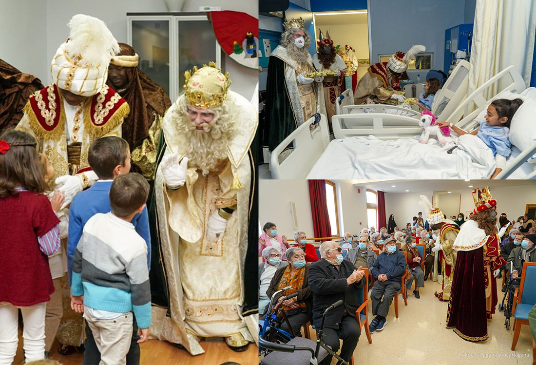 El 'caminito' de Melchor, Gaspar y Baltasar por la ciudad de Cartagena esta mañana se ha iniciado con una visita a los niños del hogar de la infancia, para después pasar un ratico con los mayores del 'Asilo de los pobres' del Barrio de la Concepción y de ahí dirigirse al área infantil del hospital de Santa Lucía. GALERÍA DE FOTOS (pinchar aquí)