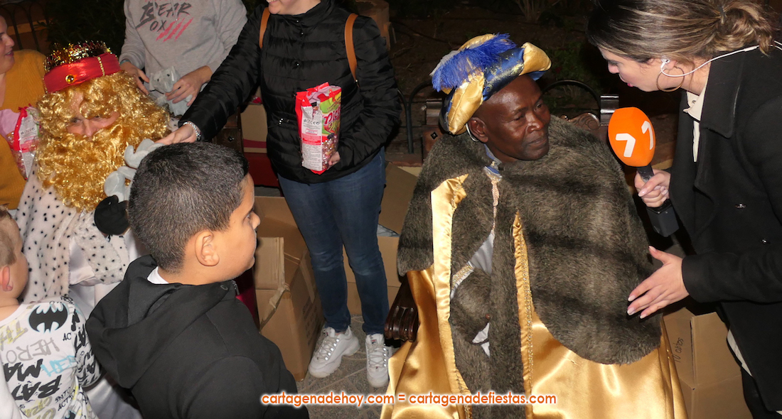 "Ya vienen los Reyes Magos, caminito de Belén...", comienza el popular villancico, que en este caso varía su destino, pues ha sido la barriada urbana de Cartagena la primera que los ha recibido, levantando mucha expectación entre los chavales en el local social, donde también hubo merienda aportada por la asociación vecinal, que preside Ana de Haro, y bailes, además de la música de una charanga.