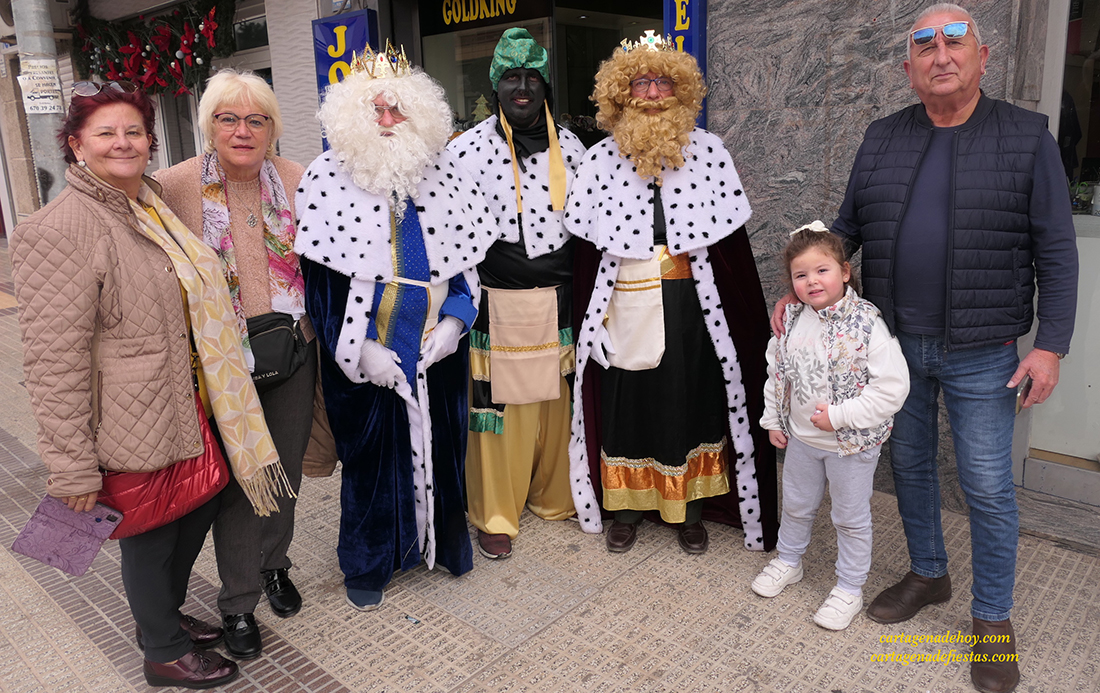 Melchor, Gaspar y Baltasar visitaron ayer por la mañana a los usuarios del centro de día de Los Dolores y después recorrieron la calle de Alfonso XIII, arteria principal del populoso barrio, en la que han sido objeto de numerosas fotografías con pequeños y mayores.