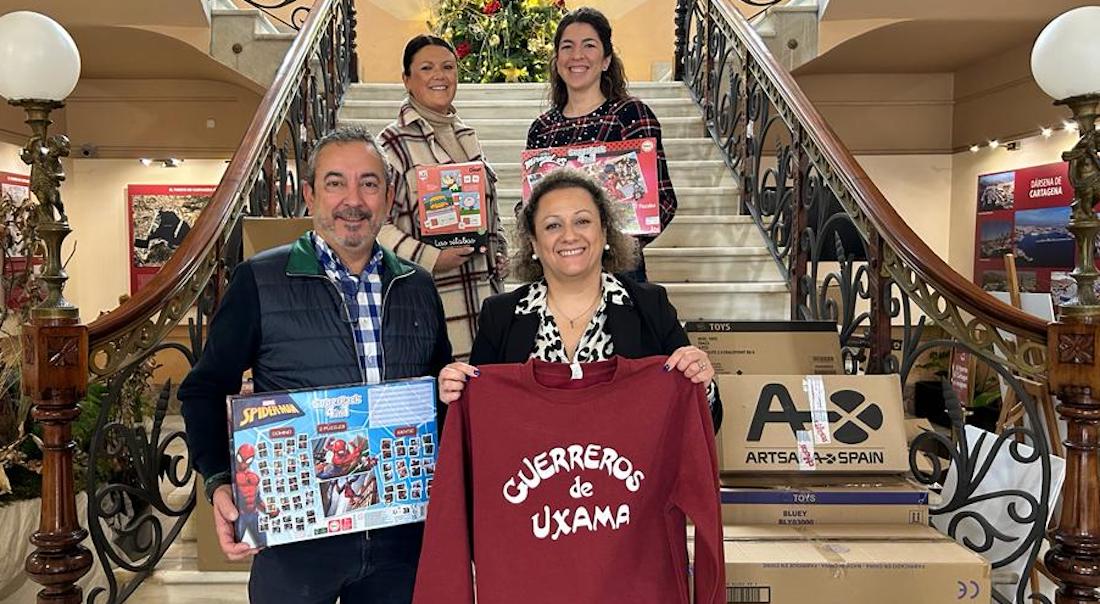 Con el lema 'Trae un juguete y compramos otro por ti', la entidad del puerto ha recibido juguetes de vecinos, trabajadores de la empresa, tropa carthaginesa de 'Guerreros de Uxama' (foto adjunta) y la empresa portuaria Ership, para a continuación la APC duplicar la cifra.