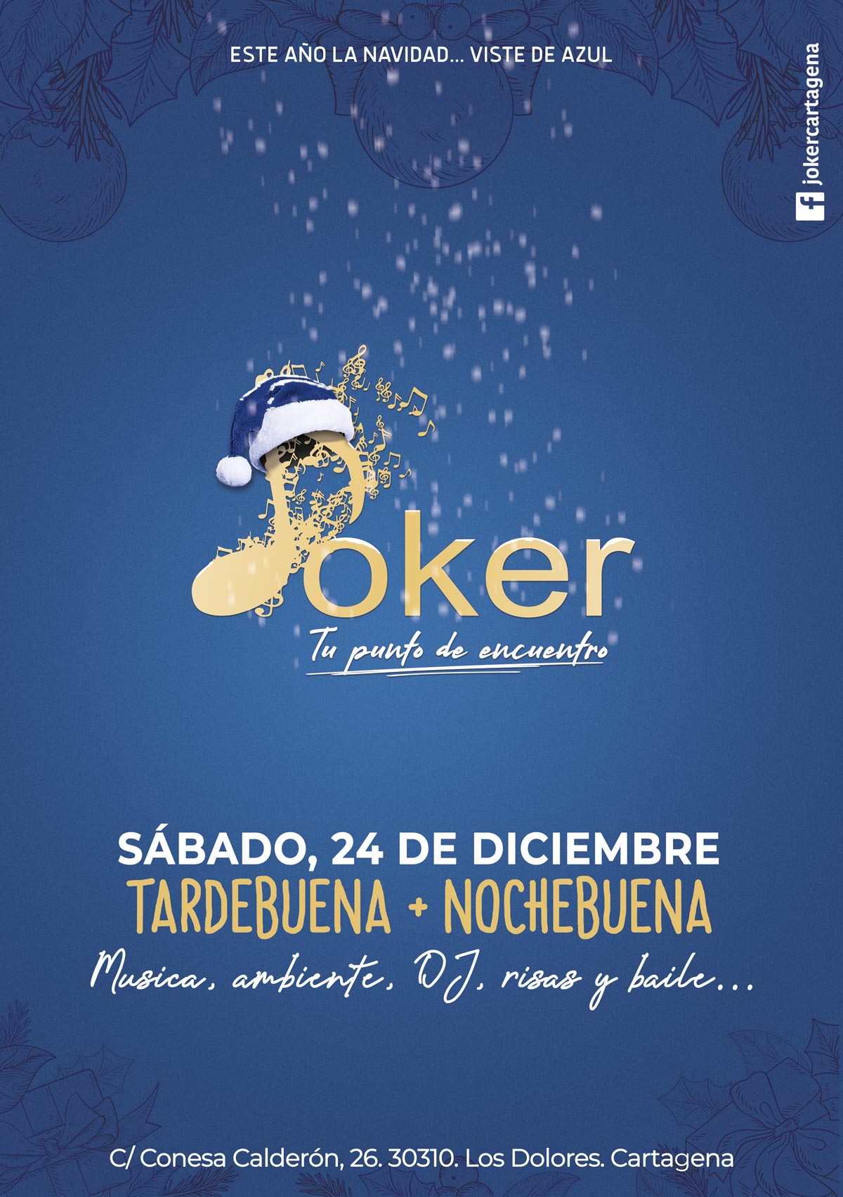 Este año la Navidad... viste de azul. Lo tenemos ya todo preparado para un día tan especial como es el 24 de diciembre para que disfrutes de la Nochebuena y, como no, de la Tardebuena, que llevamos décadas celebrando, siendo de los más antiguos de Cartagena. Estes sábado te esperamos con la mejor música, DJ, ambiente y risas. ¿Dónde? En la calle Conesa Calderón de Los Dolores. Es decir, en Pub Jóker.