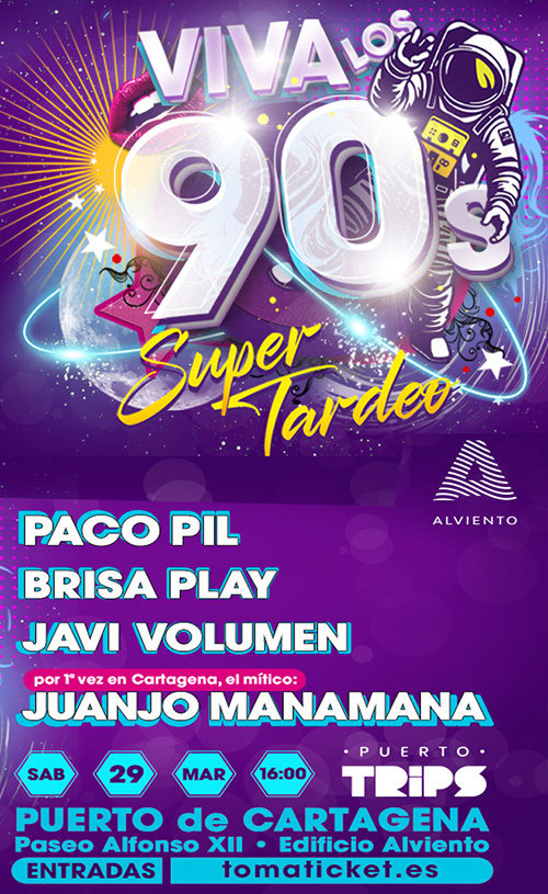 Fiesta noventera con la mejor música para pasar una tarde y una noche que será inolvidable con Paco Pil, Brisa Play, Javi Volumen y el debut de Manamaná en Alviento, en un formato diferente y cercano. Aquí te explicamos cómo puedes conseguir dos entradas gratuitas.