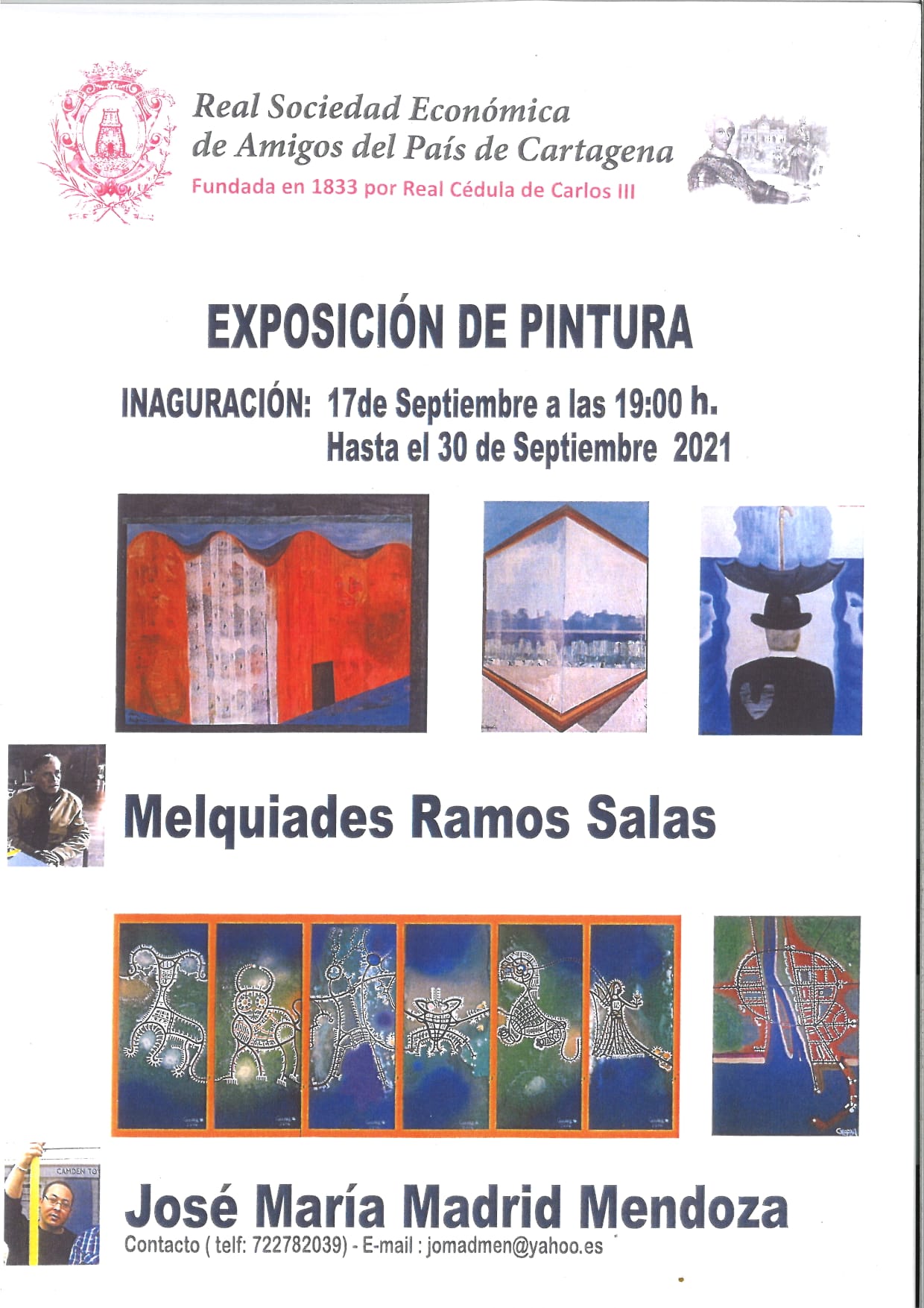 La muestra de pintura a cargo de los artistas Melquiades Ramos Salas y José María Madrid Mendoza será inaugurado hoy, a la s19 horas, en la sede de la calle del Aire de la Real Sociedad Económica de Amigos del País de Cartagena.