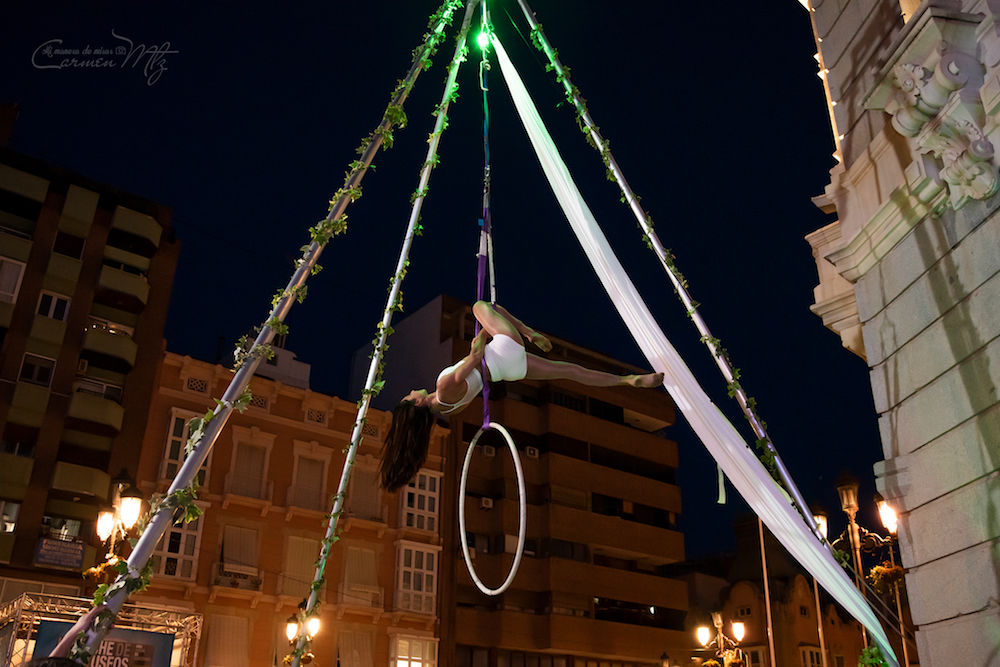 Dentro de las propuestas que enriqueció las visitas museísticas se encontraban las danzas neoclásica ('Plenilunio') y contemporánea /('Natura'), desplegadas con coreografías dirigidas por Margarita Amante y Mateo Amante en la dárse de botes del puerto, y la danza aérea ('Mis raíces por tus ramas') que se ofreció en la plaza José maría Artés. Carmen Martínez ofrece a los lectores su visión de estos espectáculos.