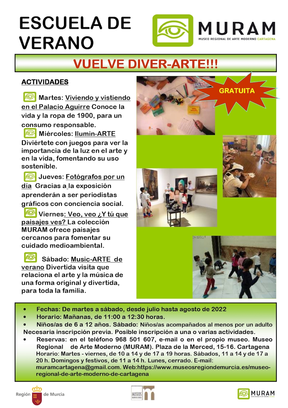 Leer más...El Museo Regional de Arte Moderno, cuya sede está en la plaza de la Merced de Cartagena, organiza esta inciativa de ‘Diver-Arte’ de martes a sábado durante julio y agosto. Gratis para los participantes.