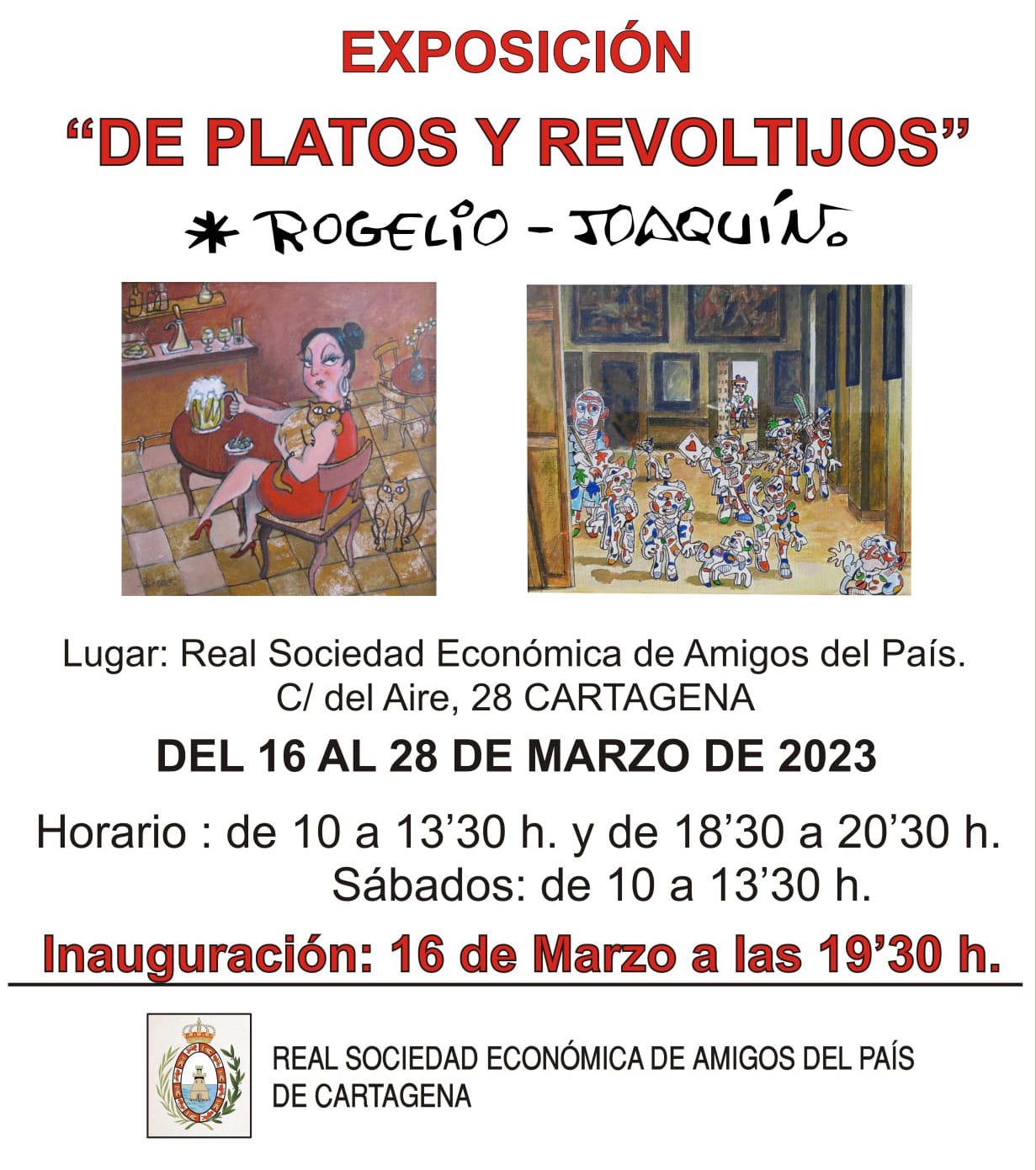 El acto que abrirá la muestra de los dos grandes dibujantes cartageneros tendrá lugar a las 19.30 horas en la planta baja de la Real Sociedad Económica de amigos del País, en la calle del Aire, y podrá ser visitada hasta el 28 de marzo.