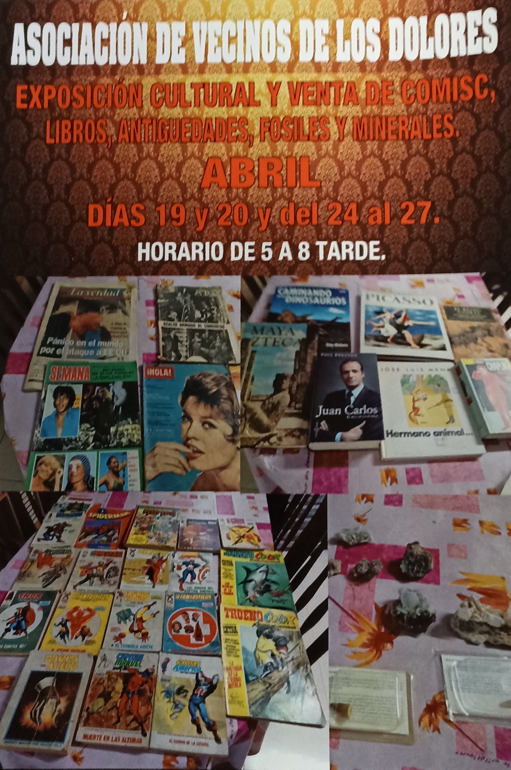 La asociación de vecinos acoge hasta el próximo jueves, día 27, una muestra cultura de libros, antigüedades, fósiles, minerales... También hay tebeos, que se venden. El horario es de 5 a 8 de la tarde.