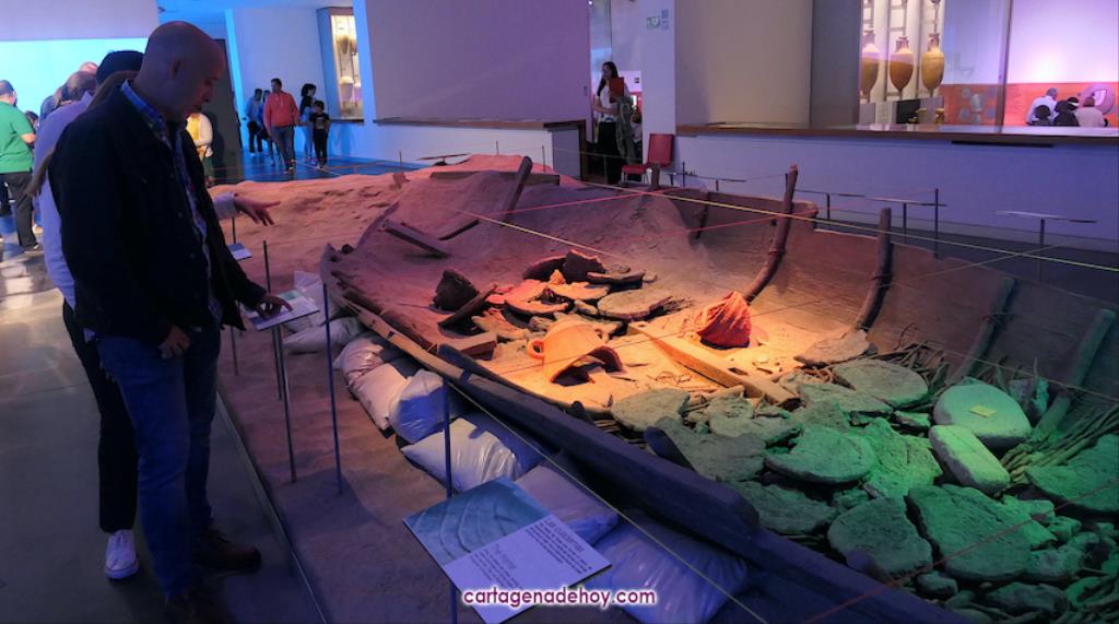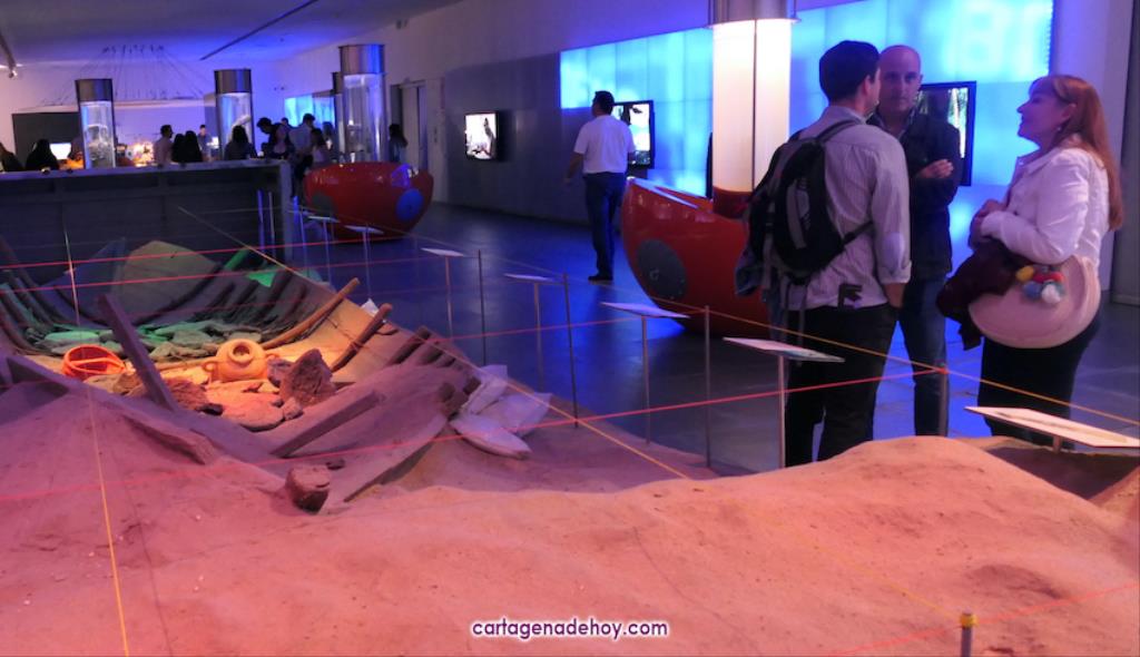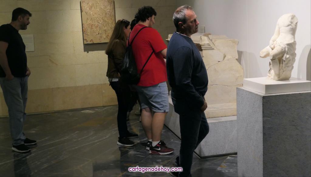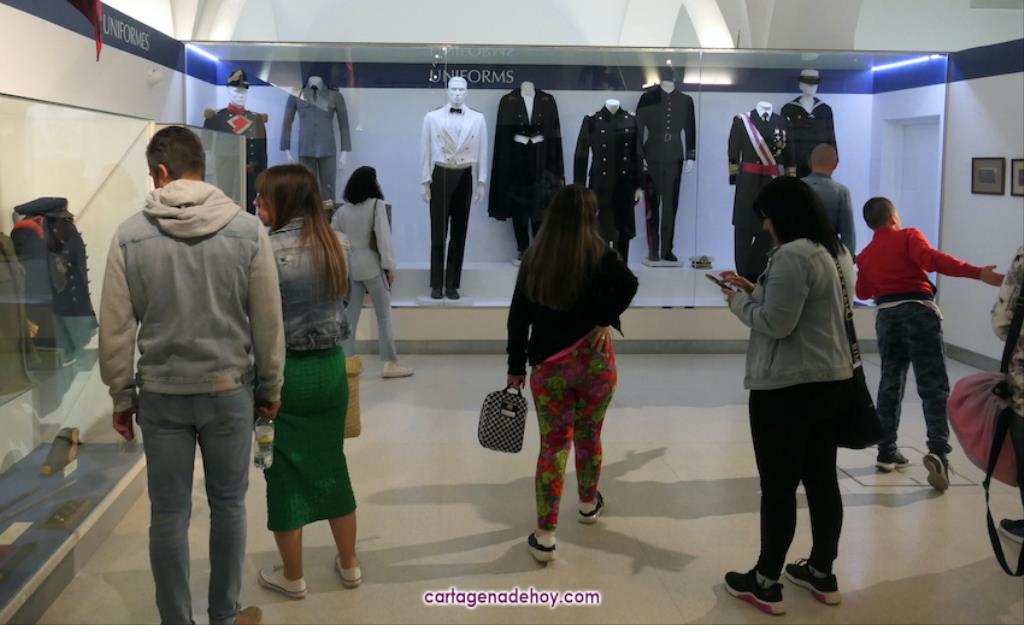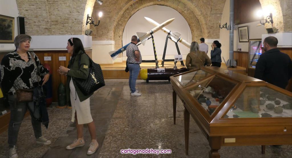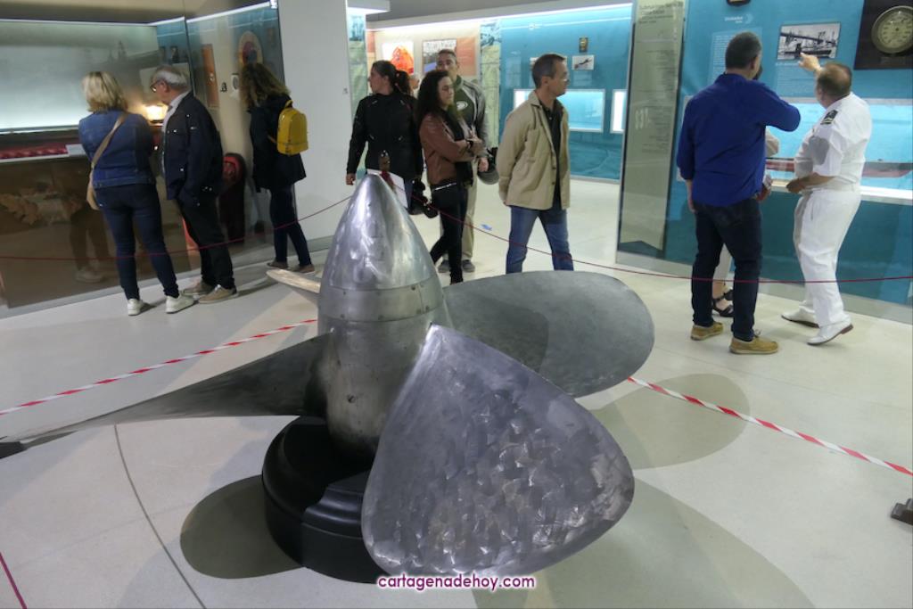 Un espectáculo de fuego animaba en el inicio de la subida al Molinete, donde el museo también tenía cola para ver la exposición y visitar la ‘pequeña Pompeya’, que cada vez está más grande. Los tres tenores, por su parte, desbordaron el aforo del salón de actos de la Real Sociedad Económica de Amigos del País y la música también era protagonista en conciertos en la plaza del Rey, en la plaza del Ayuntamiento y en el Teatro Romano, otro lugar con mucha cola. Nos acercábamos al mar y también visitamos la sala donde está el histórico sumergible de Isaac Peral y el Museo Naval. Tres horas llevábamos de ruta laboral haciendo fotos y tomando notas, es decir, sin saborear tanto ‘tesoro’ como ofrecen nuestros museos. Era evidente que tanta propuesta no es posible asumirla, pero sí permite estructurarse, como ya hacen muchos. Este año voy a estos, el año próximo a los otros y al siguiente… La cuestión es que, además de los visitantes que podamos tener, los cartageneros conozcan su tierra y lo que le ofrece.