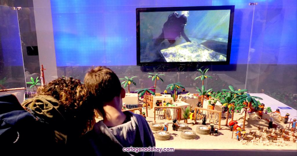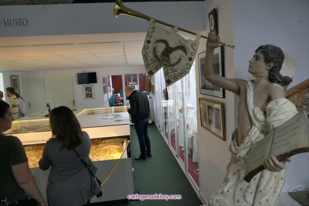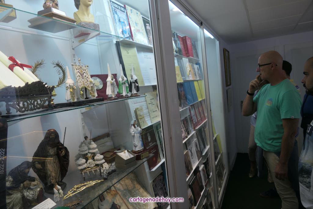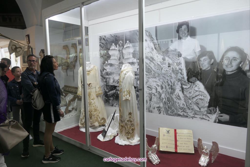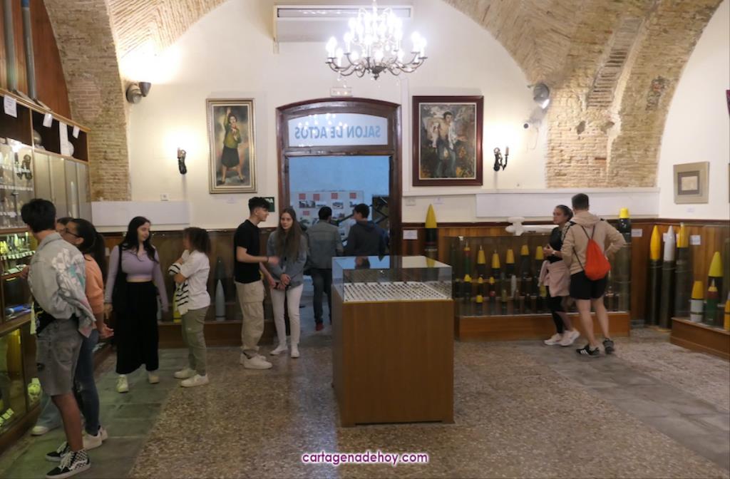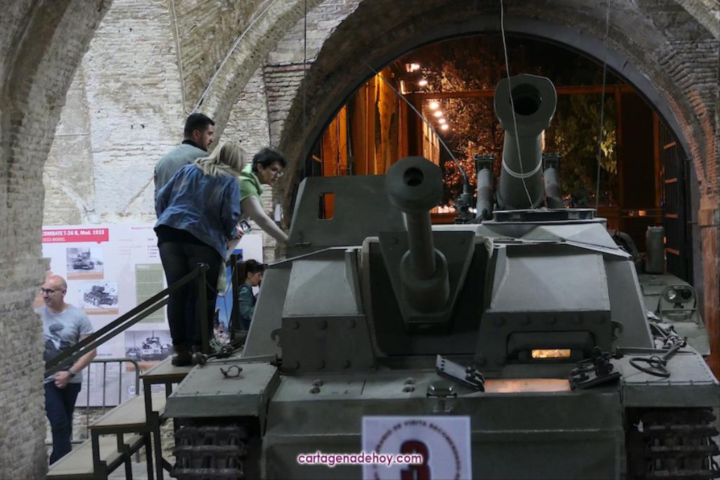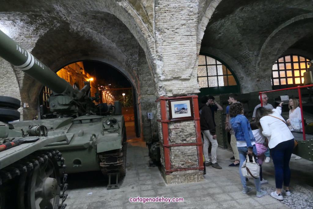 Cartagena de Hoy (Cartagena de Fiestas) estuvo en el campamento en el que se mostraban Carthagineses y Romanos (va en otro artículo propio) y después estuvimos en el ARQUA, donde actuaba la ‘Orquesta de jóvenes talentos’ y donde ‘los mares de playmóbil’ eran un fuerte imán para los más pequeños. Desupués comenzamos a ver las colas para entrar a los refugios de la Guerra Civil y a la exposición sobre el Antiguo Egipto (ofrecimos un reportaje hace un par de semanas) en el Augusterum, llegando al final de la calle Serreta donde el Archivo Municipal (además de regalar libros) mostraba documentos sobre la sublevación cantonal. Desde ahí se escuchaba la música de jazz de ‘Big Band’ en un abarrotado patio del Museo de Artillería, en cuyas estancias se sucedían las visitas entre armas, uniformes y tanques. También en esta instalación estaba la muestra del San Juan californios en torno al restaurado manto de la imagen. Por su parte, la Cofradía del Resucitado montó una exposición en su capilla de Santa María en torno al restaurado grupo de Emaús.