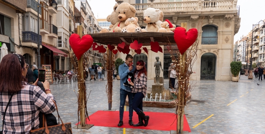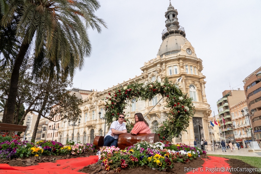El Ayuntamiento de Cartagena celebra San Valentín este miércoles, 14 de febrero, con la instalación de siete photocalls en diferentes puntos de la ciudad. Los enamorados podrán fotografiarse en estos adornos florales para ganar una de las cinco cestas gourmet en pareja que regala El Corte Inglés a las imágenes más románticas u originales.