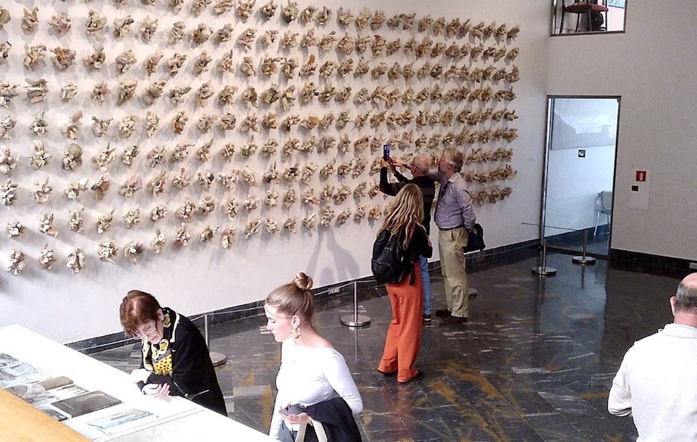 Ampliada hasta finales de abril la exposición ‘Dádiva’ del artista yeclano en el Museo Teatro Romano debido a la muy buen acogida, que ya suma más de cincuenta y siete mil visitantes. El artista ha elaborado piezas del friso que guardan similitud con la manera que tenían los romanos de realizar las máscaras funerarias, donde el rostro del difunto se reproducía con cera para hacerlo presente. En la imagen se observa el friso de 252 piezas surgido del pasado romano y el arte contemporáneo.