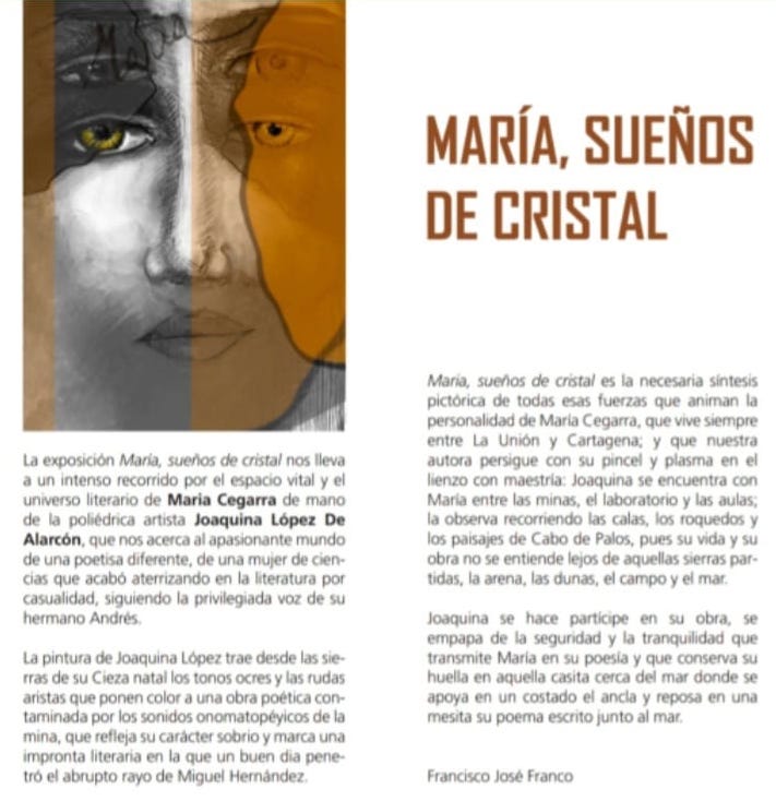 La exposición 'Sueños de cristal', dedicada a la científica y escritora unionense, cumple sus dos primeras semanas en el Teatro Romano de Cartagena, donde estará hasta el 26 de abril con las pinturas creadas por Joaquina López.
