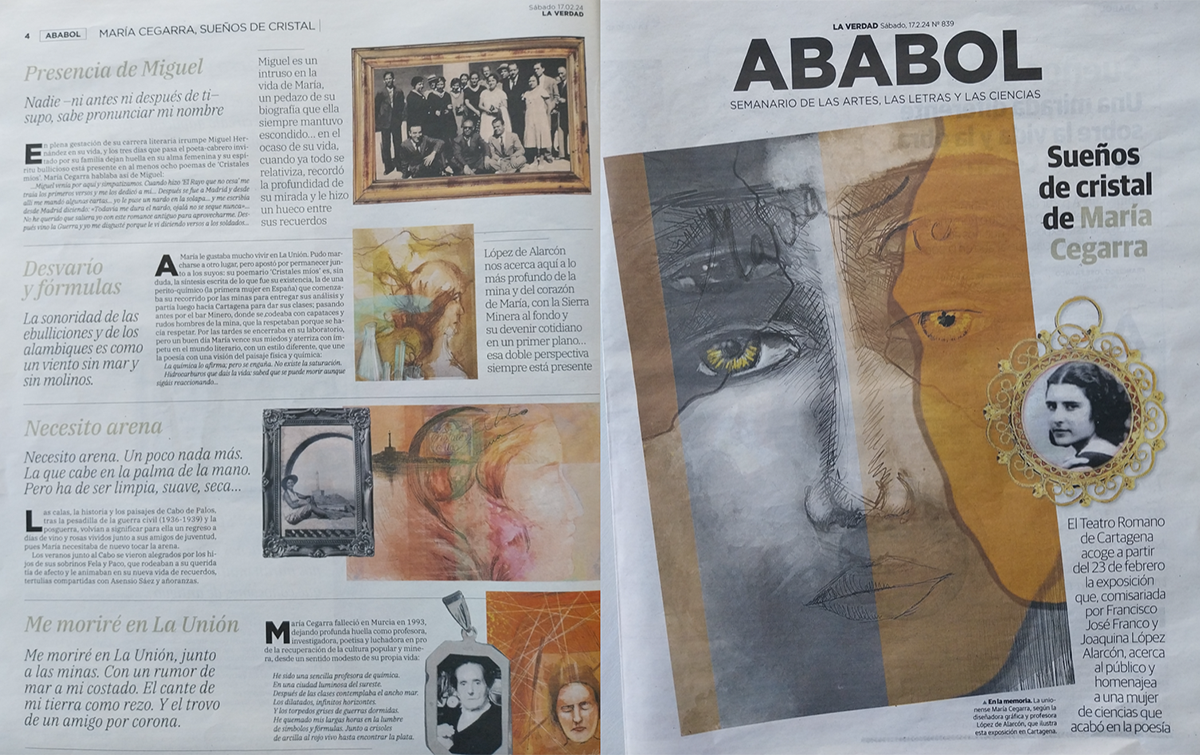 Su exposición ha motivado un amplio reportaje en el periódico 'La verdad', dentro del suplemento culural 'Ababol'.