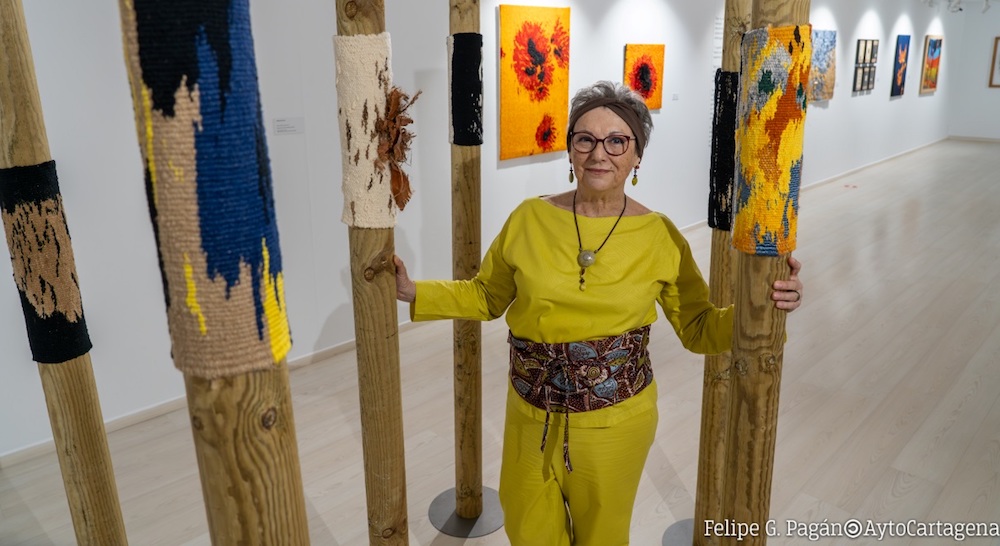 La cartagenera Isabel Muñoz expone hasta el 12 de junio en la antigua Muralla Bizantina una veintena de tapices y nueve obras abrazadas a troncos de árbol, todas tejidas en telar vertical sin lizos y con fibras naturales. Se pude visitar de martes a domingo.