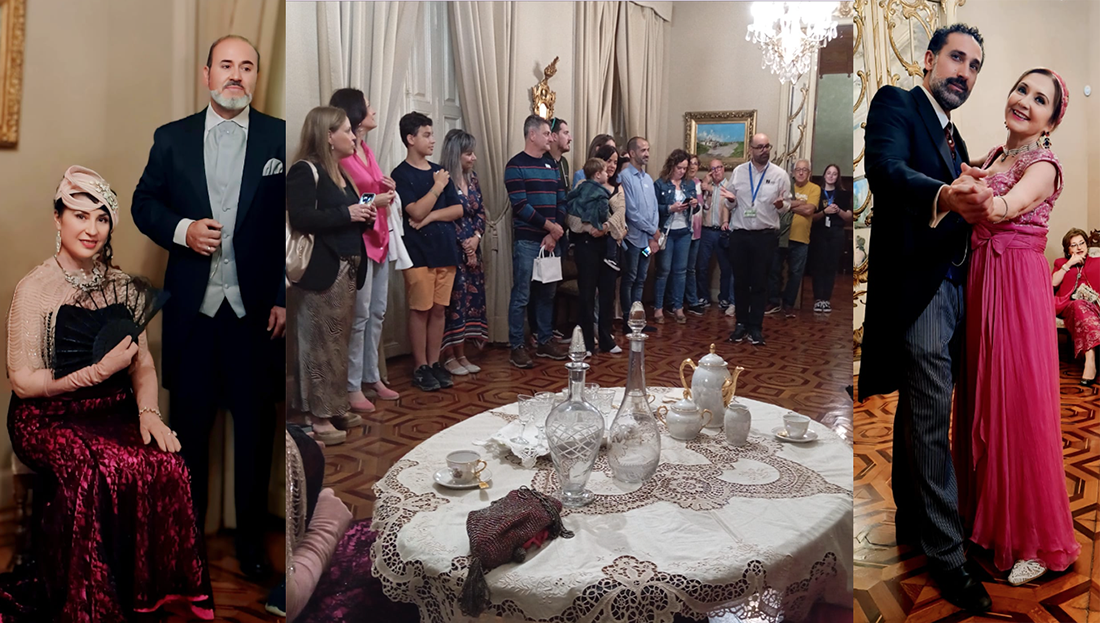 Treinta integrantes de la asociación, con el refuerzo de varios colaboradores, todos ataviadas con vestidos de época, han recreado para los visitantes momentos de la vida de Camilo Aguirre en las dependencias originales del inmueble son como el salón de baile, el despacho, el comedor, el vestíbulo, la escalera imperial de mármol y la capilla de estilo neogótico. En concreto, un miembro de la asociación ha representado a este importante empresario minero explicando su vida y a qué se dedicaba. Asimismo, también se ha mostrado como era una cena de la burguesía local de la época.