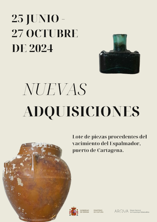 El Museo Nacional de Arqueología Subacuática ARQVA, museo de titularidad estatal perteneciente al Ministerio de Cultura, continúa con su proyecto Nuevas Adquisiciones, en el que se exhiben diversos bienes culturales de reciente ingreso en las colecciones del museo en una vitrina temática. En el Museo Nacional de Arqueología Subacuática ARQVA la principal fuente de incremento de colecciones es mediante la excavación arqueológica, la prospección y el hallazgo casual.