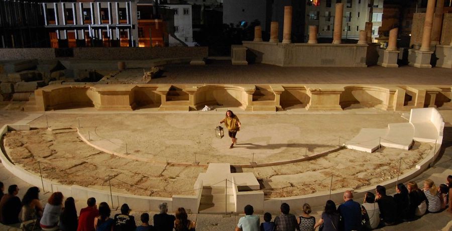 El gran arquitecto romano Vitruvio ofrecerá su visión del teatro con él se disfrutará de una visita nocturna a la más emblemática obra impulsada por Augusto en la vieja Carthago Nova. El final del viaje culmina con la inesperada aparición del imponente graderío del Teatro Romano a la luz de la luna, allí el encuentro con el teatro clásico de la mano de Plauto. Lugar: Museo del Teatro Romano