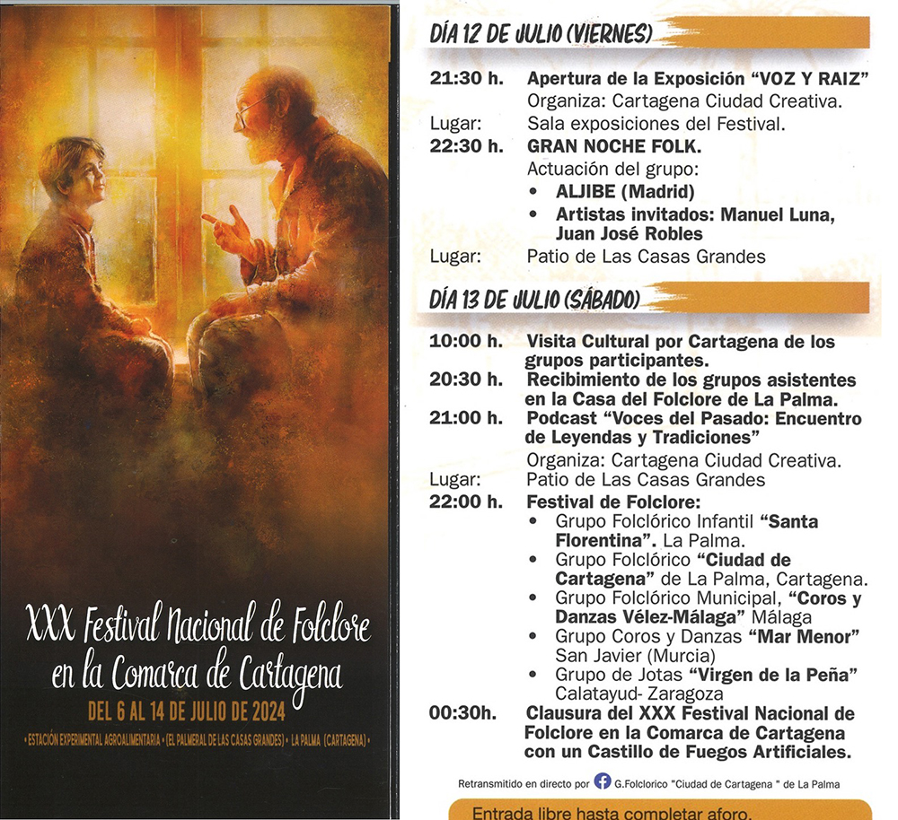 La XXX edición del 'Festival nacional de folclore en la comarca de Cartagena' acoge una atractiva exposición organizada por 'Cartagena ciudad creativa' con cuadros de diferentes artistas sobre cuentos de Andersen, más uno de la tradición popular pachequera en la que están representado el grupo folclórico de La Palma. La muestra se traslada hoy a la finca 'Casas grandes', donde tendrán lugar las dos noches de folk y folclore.