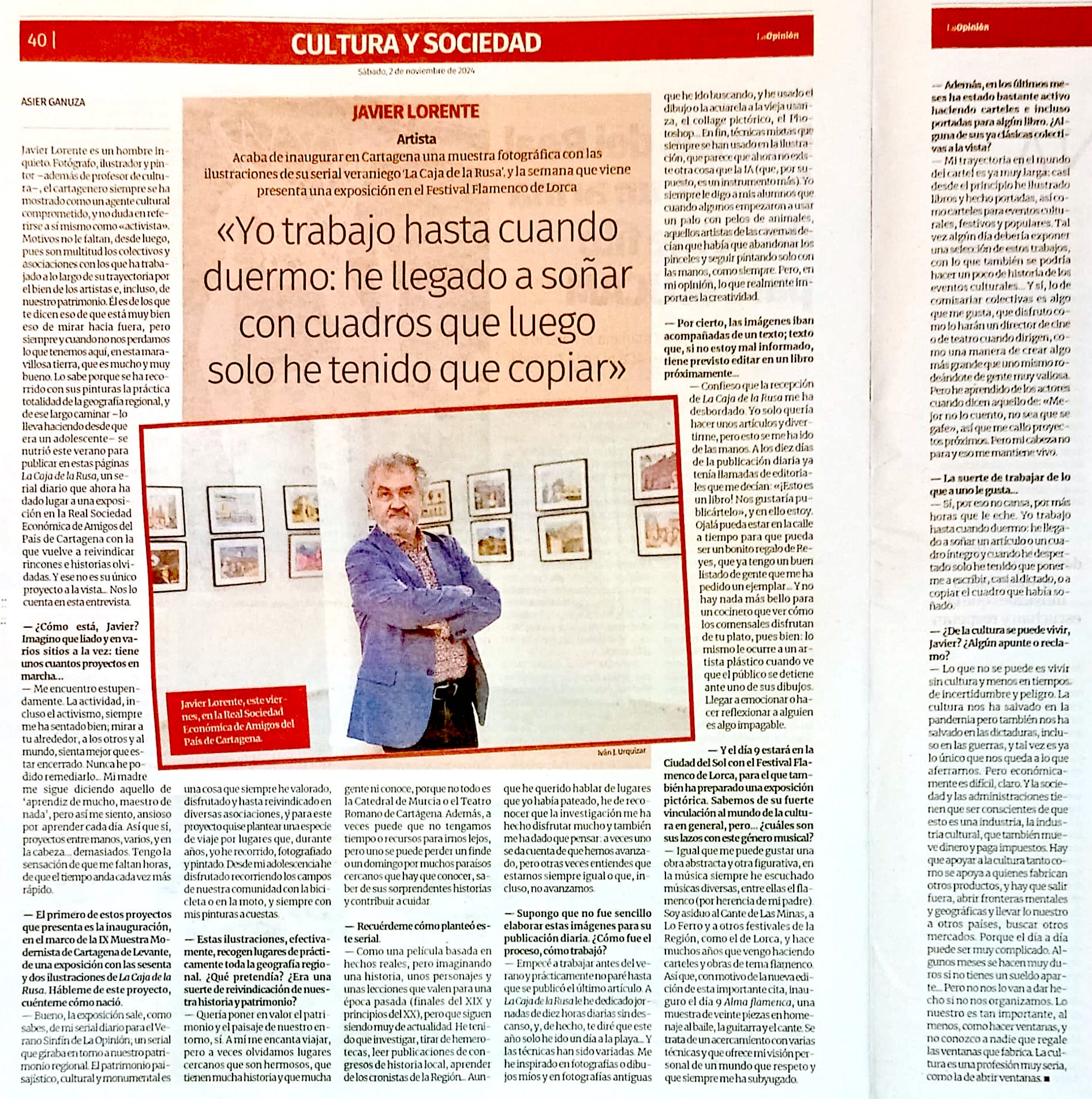 La 'IX Muestra modernista de Cartagena' comenzó con la apertura de la exposición 'La caja de rusa' con 62 obras del artista galileo Javier Lorente en la sala de exposiciones 'Domingo Bastida' de la Real Sociedad Económica de Amigos del País.
