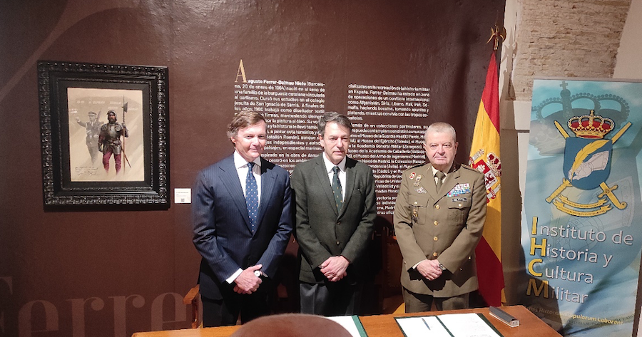 A continuación, fue firmado el protocolo de colaboración por el general de División, Antonio Ruiz Benítez, director del Instituto de Historia y Cultura Militar, y por Su Alteza Real Don Pedro de Borbón-Dos Sicilias y Orleans, Duque de Calabria y Presidente de la Fundación Ferrer-Dalmau.