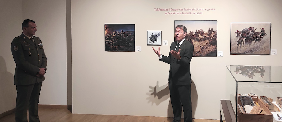 La exposición, compuesta por más de treinta obras entre originales y reproducciones y complementada con algunos fondos históricos del propio Museo, fue presentada a los presentes por el teniente coronel Ernesto Terry Andrés, director del Museo Histórico Militar de Cartagena, haciendo hincapié en que no se trata una exposición de obras de arte, sino una exposición de historia de España apoyada en obras de arte. Desde el cuadro de 'La batalla de Covadonga' en el año 722 hasta el de 'La Patrulla', que muestra a soldados españoles en Afganistán en 2012, se hace un recorrido histórico por los hechos militares más relevantes que han definido la historia militar de España.