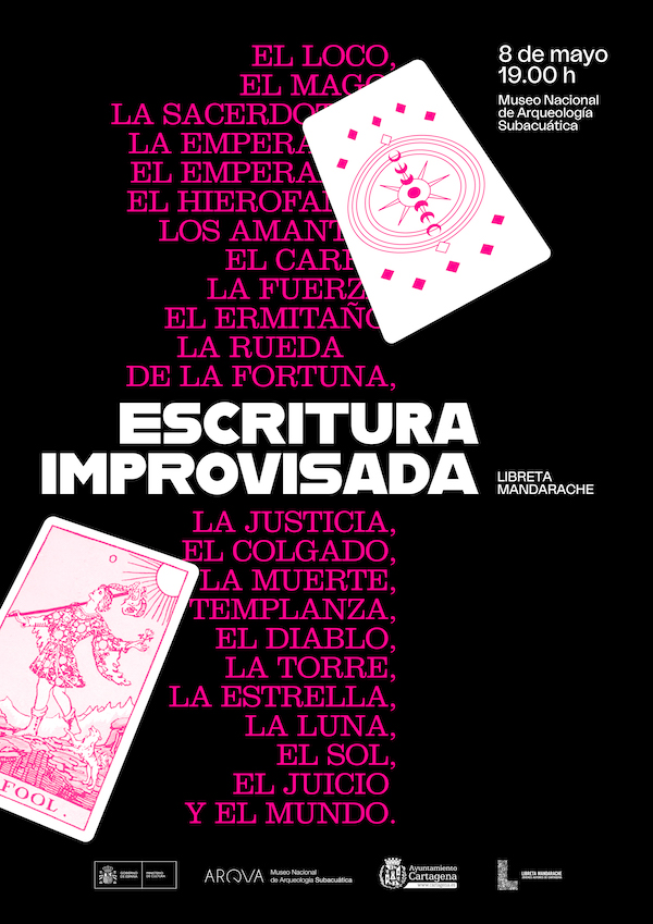 El Museo Nacional de Arqueología Subacuática ARQVA, museo estatal dependiente del Ministerio de Cultura, celebrará una acción de escritura en vivo, con motivo de la clausura del taller de escritura creativa Libreta Mandarache, que tendrá lugar en la sala de exposiciones temporales del museo el 8 de mayo a las 19:00 horas, con acceso libre y gratuito hasta completar aforo.