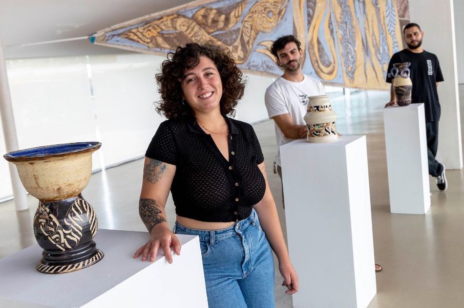 'La mar de arte' se ha inaugurado con la muestra de los jóvenes artistas Catalina García, Ismael Cerezo y Chose García en El Batel dentro del festival 'La mar de músicas'. Dos velas de barco intervenidas artísticamente y casi una veintena de piezas de cerámica, donde los artistas han hecho una alianza dejando su impronta en todas las obras, se podrá ver hasta el 30 de agosto.
