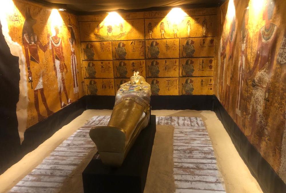 La exposición 'Tesoros de Egipto', que ha abierto hoy en el Augusteum, se podrá visitar hasta el 30 de septiembre. Ofrece más de cien piezas de recreación a escala, de preciadas piezas del Museo del Louvre, el Museo Británico o el Museo del Cairo, en el que destacan la piedra Rosetta descubierta en la campaña egipcia de Napoleón, ajuares funerarios de Tutankamón, la estatua de escriba sentado, la recreación del despacho del célebre arqueólogo y egiptólogo Howard Carter y el templete dorado de los vasos canopos.