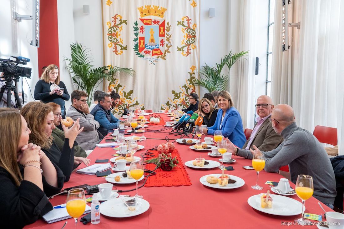El Ayuntamiento elevará en 2023 la nueva subvención municipal al precio del billete de autobús hasta el 30%, lo que supondrá que los cartageneros pagarán un 60% menos por el billete del autobús en los abonos, según ha anunciado la alcaldesa, Noelia Arroyo, durante el desayuno navideño ofrecido este viernes 30 de diciembre a los medios informativos.